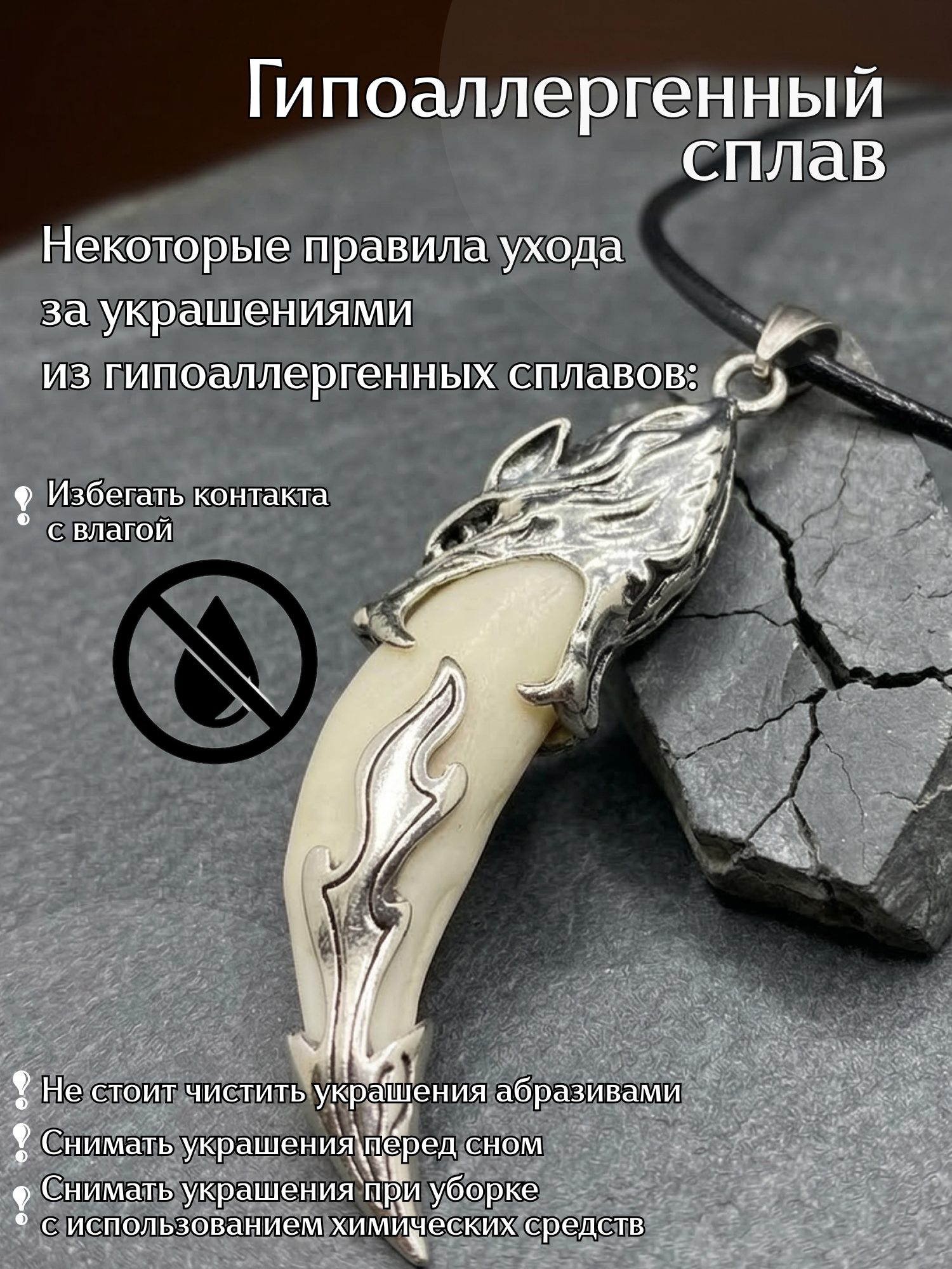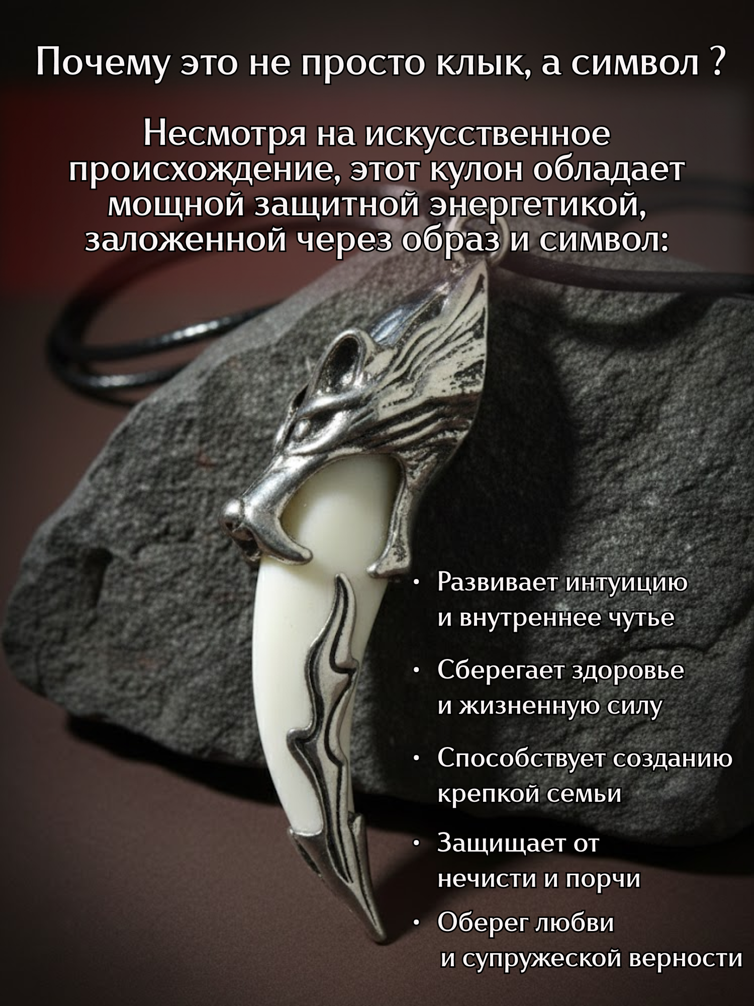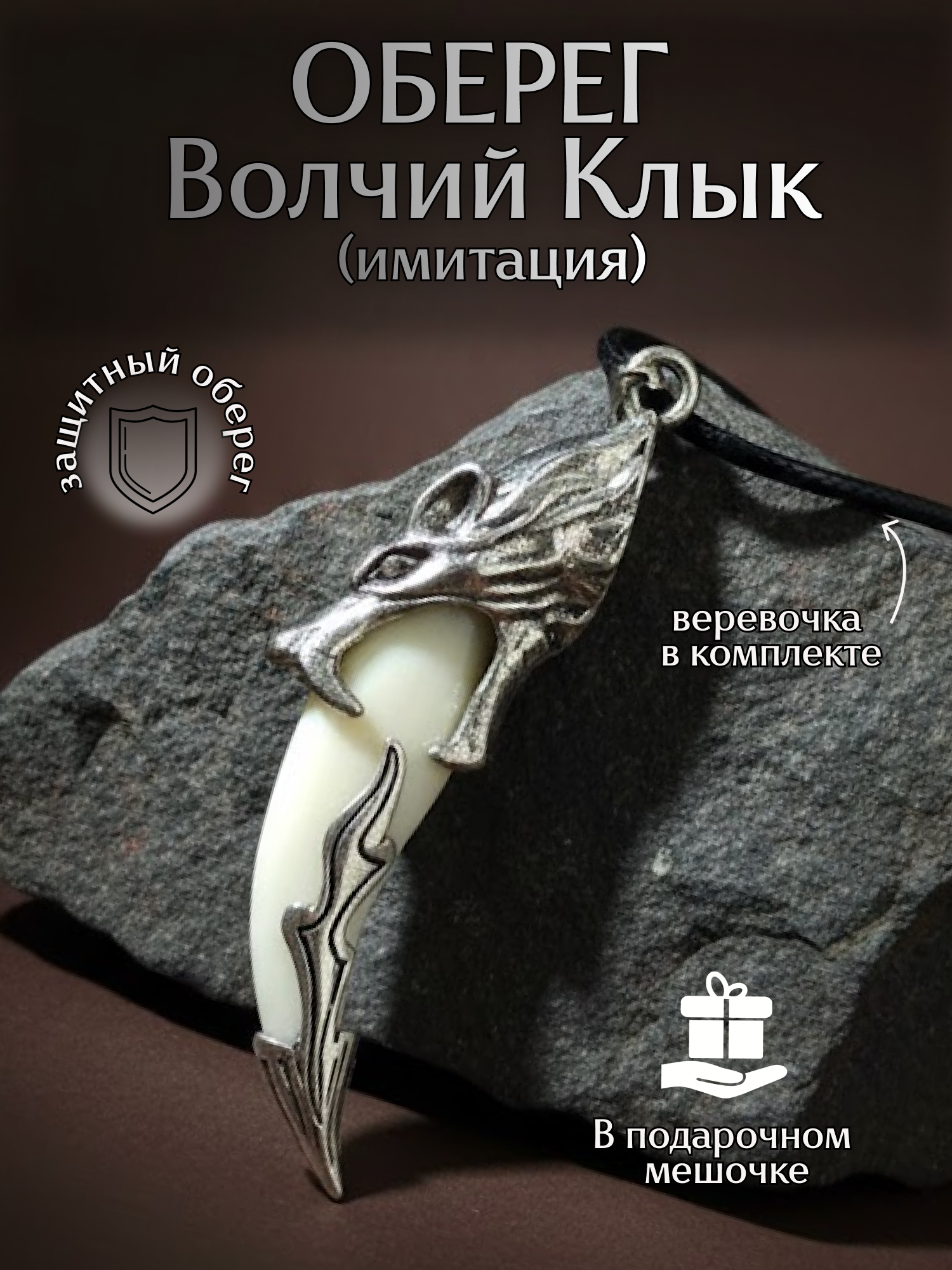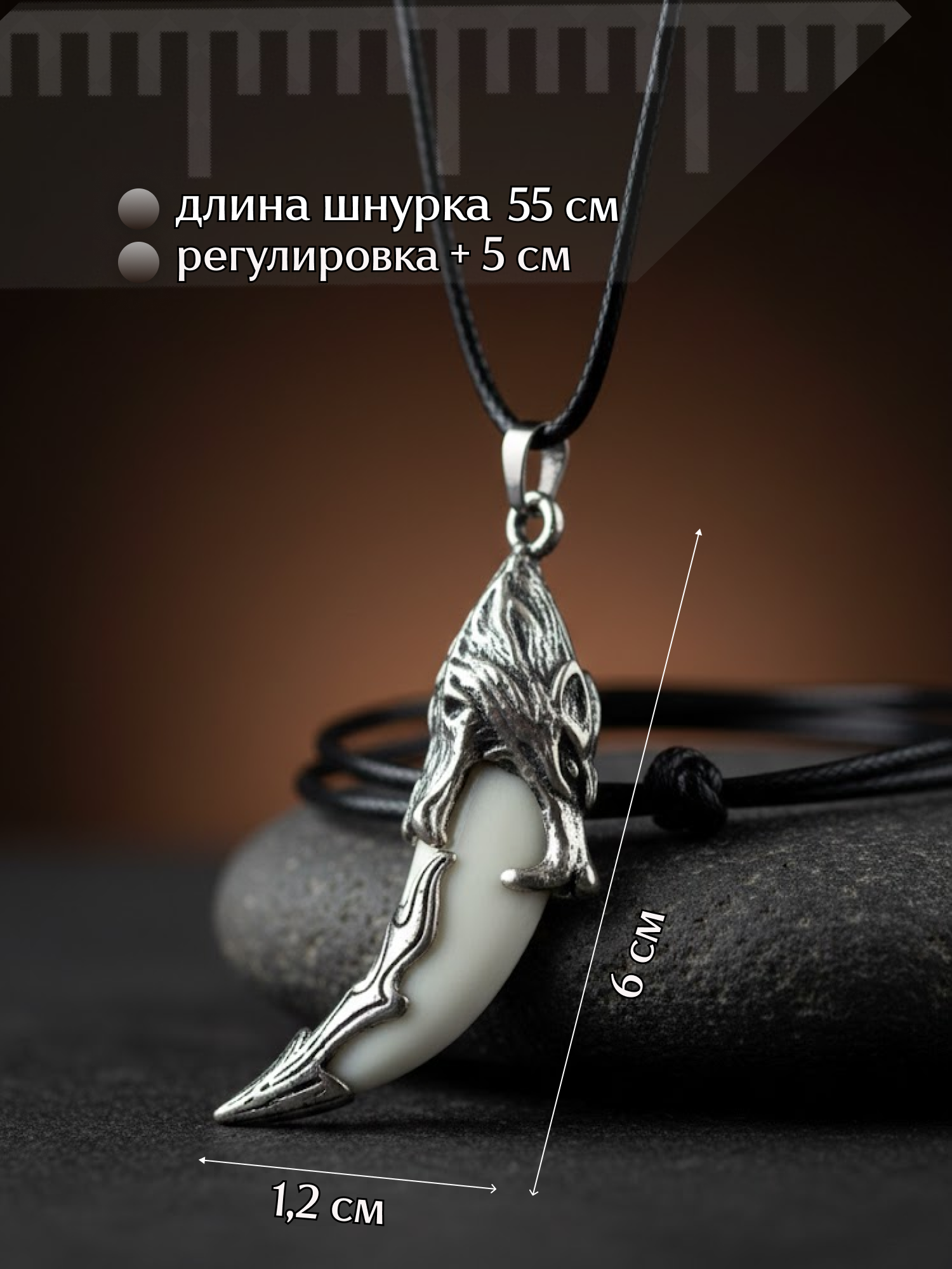 Если вы ищете настоящий волчий клык — в нашем каталоге есть отдельная позиция «Натуральный волчий клык». Данное изделие — для тех, кому важен именно образ, эстетика и отсылка к вселенной Майора Грома, а не биологический материал.