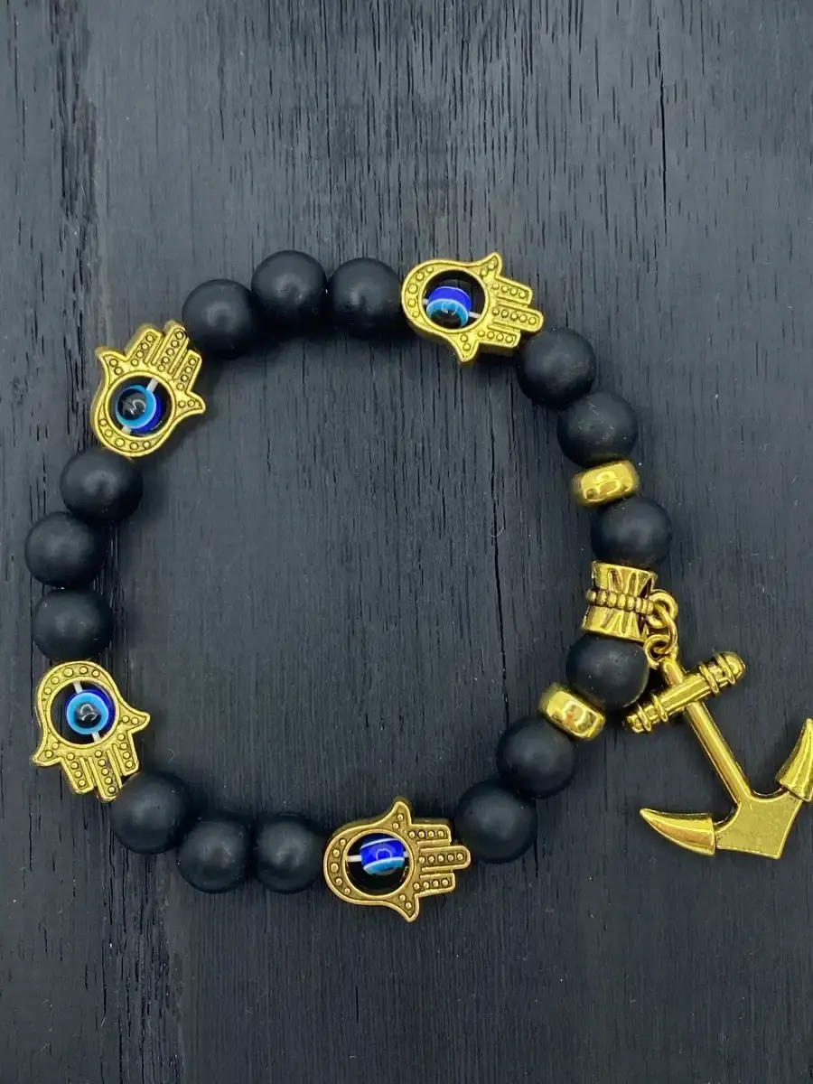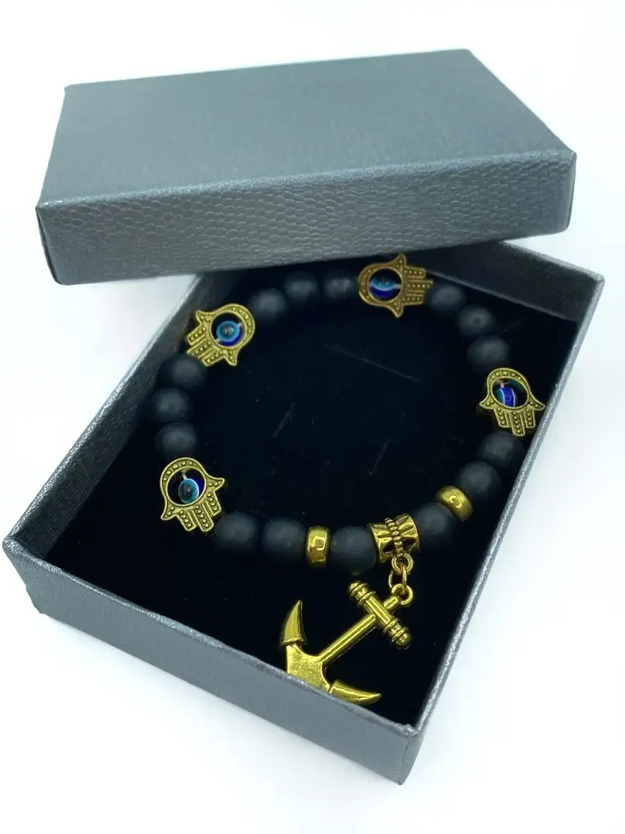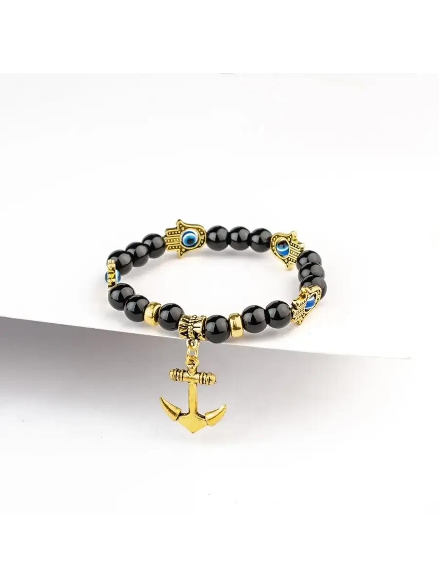 Стильный браслет на резинке с оберегами Хамса и Якорем. Размер браслета 22 см. Браслет Унисекс - подойдёт как на женскую, так и на мужскую руку.