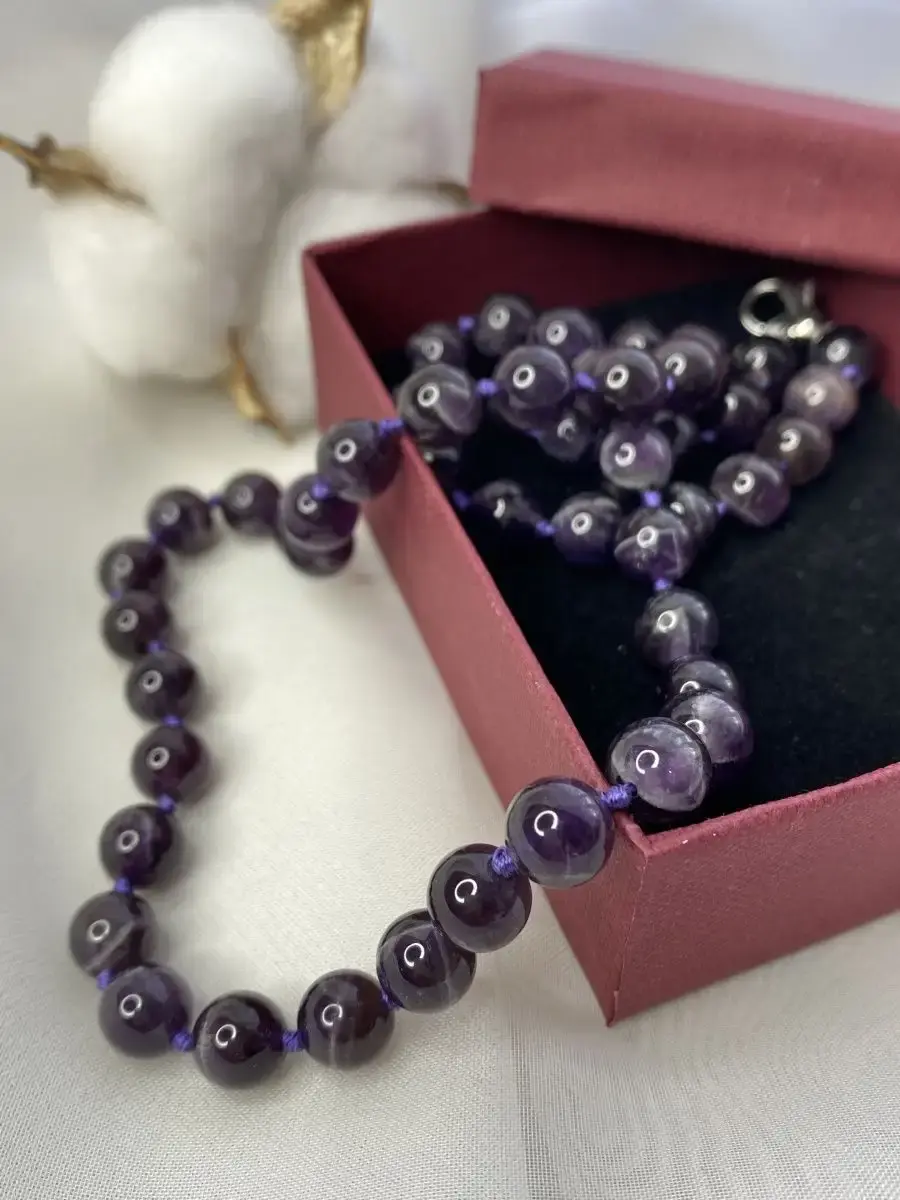 Бусы из натурального аметиста - эффектный уникальный и символичный подарок для женщин и девушек в красивой ПОДАРОЧНОЙ КОРОБКЕ!