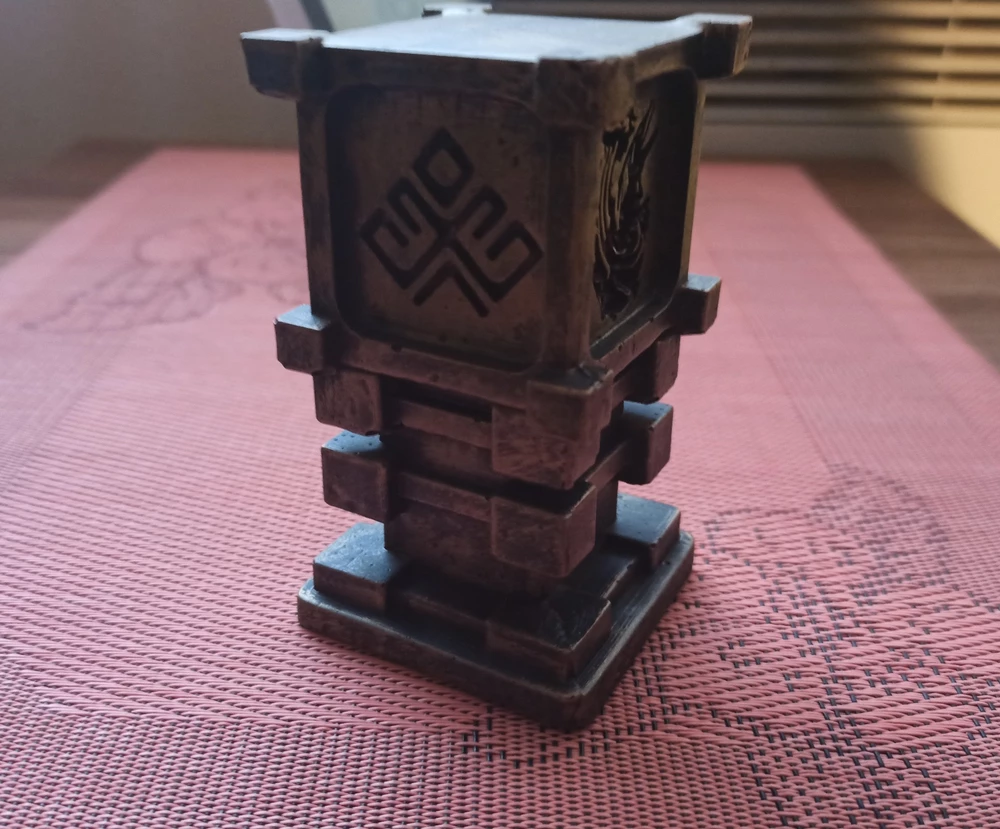 Геральдический и динамичный образ: Статуэтка представляет собой рельефный символ Чертога — стилизованное девятилучевое солнце с руной Щуки внутри, либо композицию с самой царицей вод. Образ сочетает сакральную геометрию с ощущением скрытой мощи и готовности к стремительному движению.