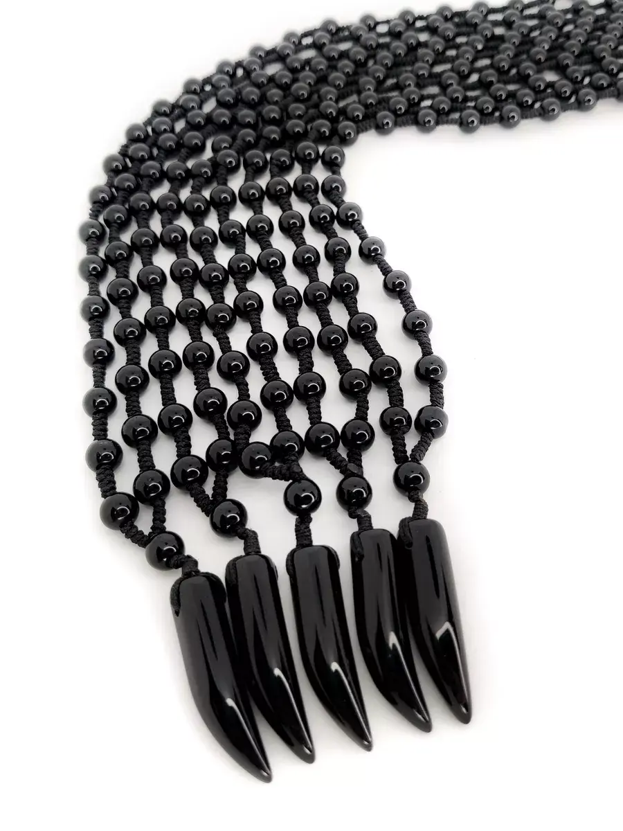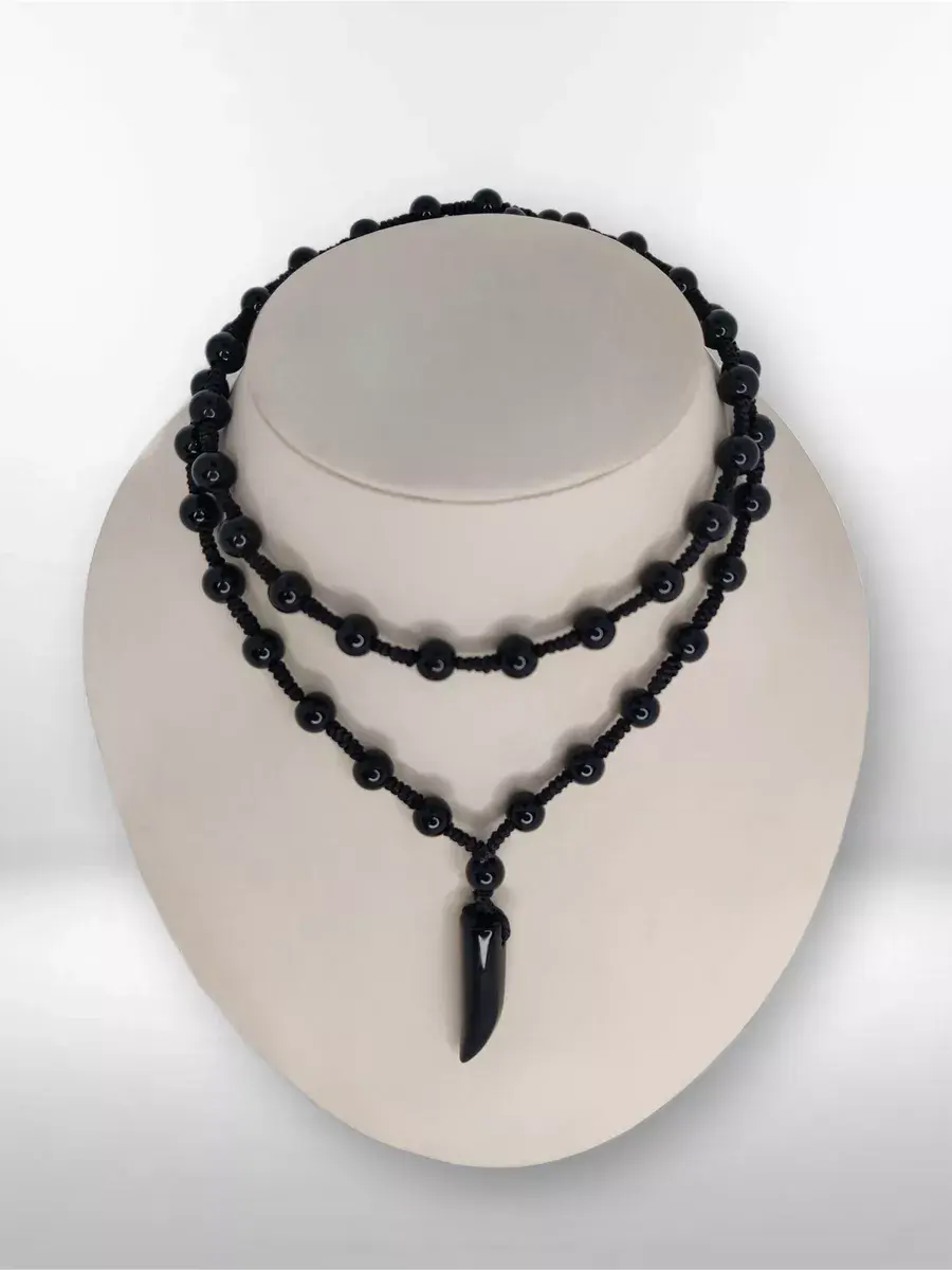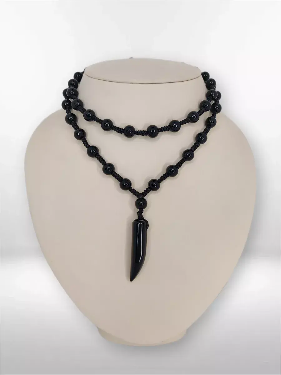 Ожерелье-чётки с имитацией черного агата и подвеской Клык - эффектный уникальный и символичный подарок для мужчин и женщин в красивой ПОДАРОЧНОЙ УПАКОВКЕ!