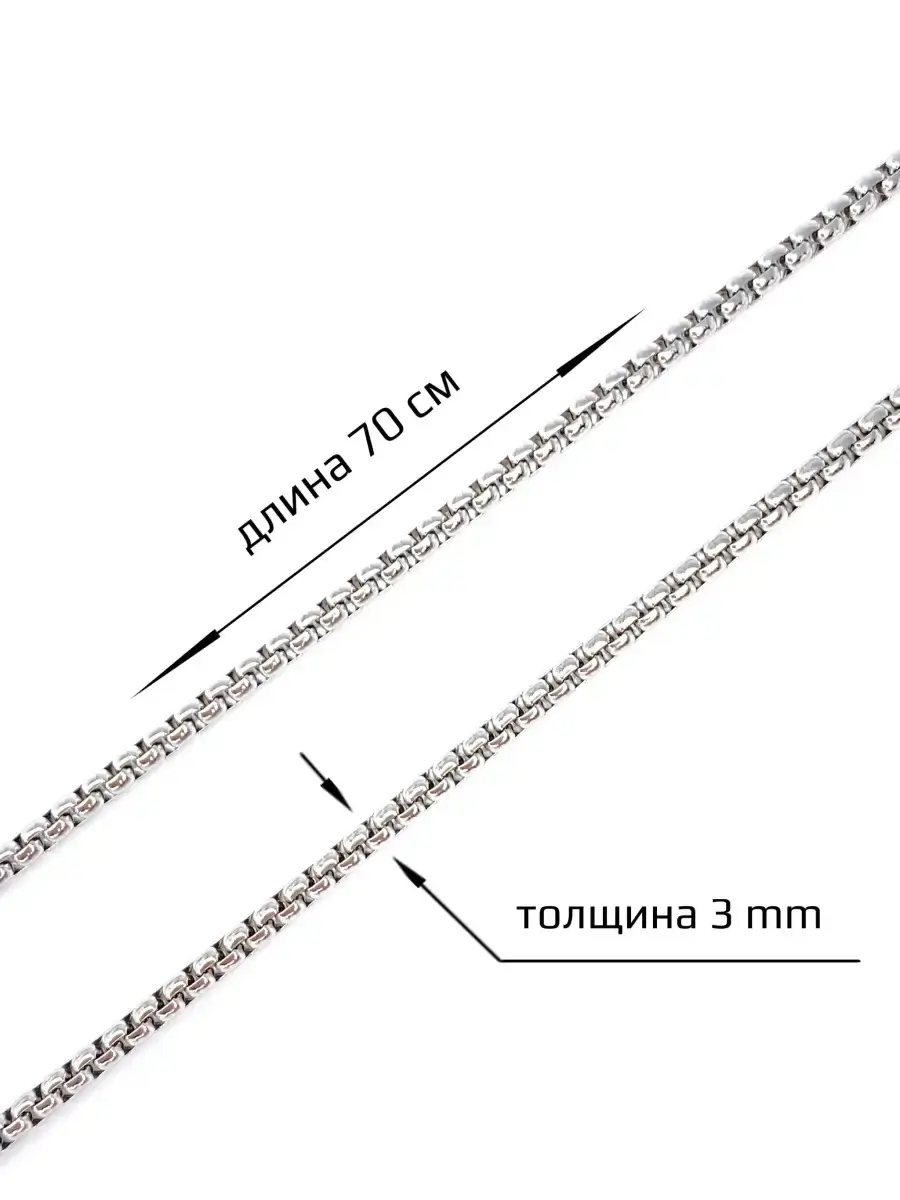 Длинная стальная цепочка унисекс - подойдёт и для мужчин, и для женщин. Универсальная цепочка представлена в трех вариантах 60 см, 70 см и 60 см толстого плетения. Бижутерная цепь на шею сделана из прочной нержавеющей хирургической стали 316L, которая не окисляется и не является причиной появления раздражения на коже.