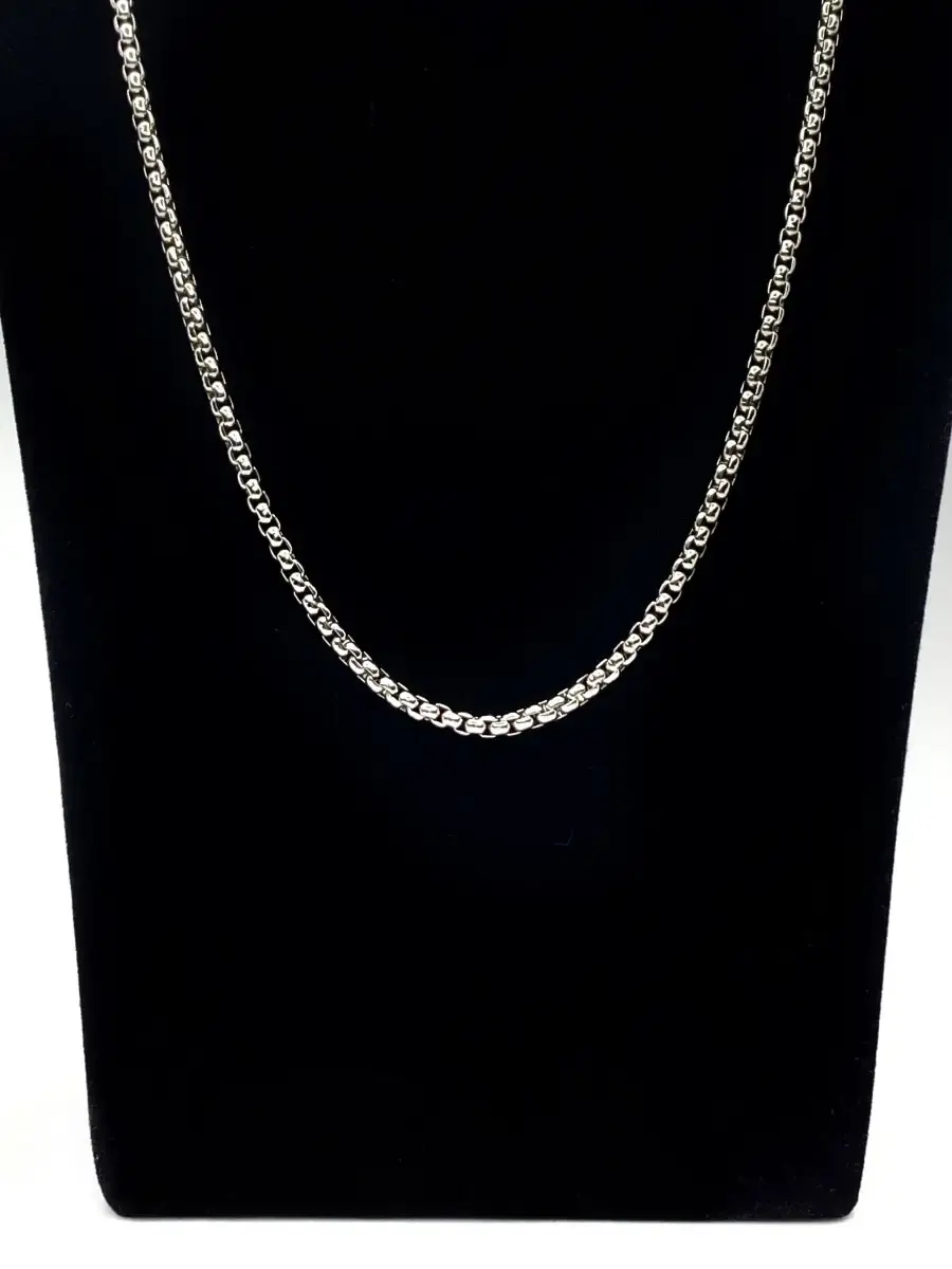 Серебристая цепочка прослужит много лет и будут выглядеть идеально, но лучше избегать соприкосновения с кислотными и щелочными веществами. Длинная цепь из стали упакована в подарочный мешочек и станет идеальным подарком близкому человеку!
