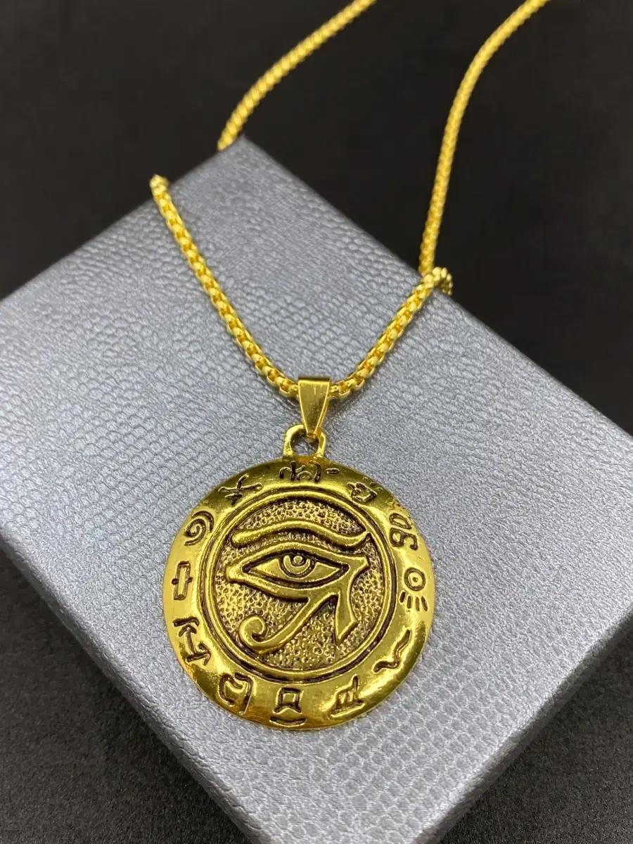 золотистая стальная египетская подвеска талисман на шею Глаз Гора на цепочке