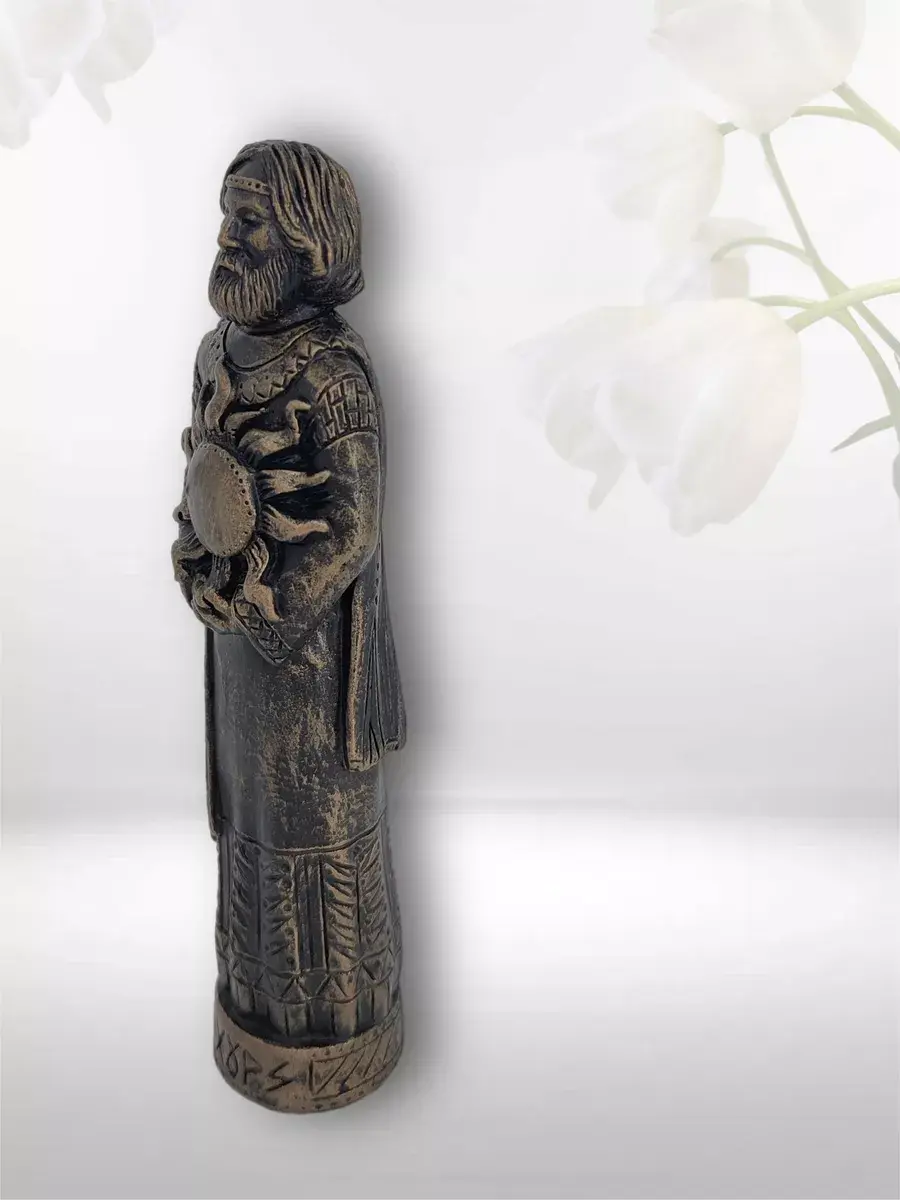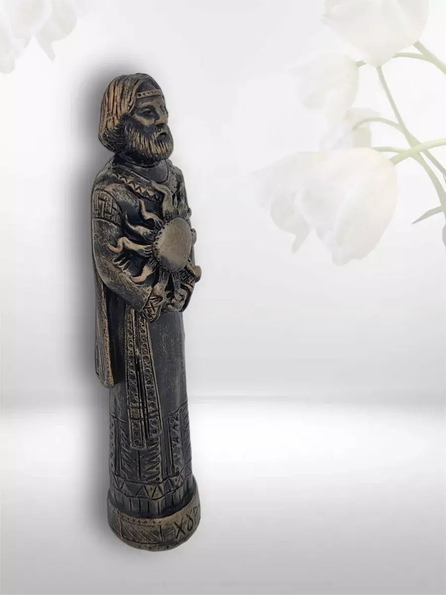 Обережная коллекционная алтарная фигурка статуэтка Бог Хорс - эффектный уникальный и символичный подарок для мужчин и женщин любого возраста! Славянский Бог Хорс — бог солнечного света и живительной силы, один из солнечных богов русского ведического пантеона. Коллекционные фигурки выполнены из 100%-ого высокопрочного гипса с добавлением пластификатора, который даёт дополнительную прочность изделию из гипса. Высота алтарной статуэтки 13 см. Гипсовая фигурка славянского бога обработана специальным водоотталкивающим средством, благодаря которому не боится воды и грязи. Ручная работа делает каждую алтарную фигурку из гипса уникальной. Структура гипса допускает наличие небольших пор на поверхности, которые не являются браком. Декоративная статуэтка из гипса надежно упакована и имеет несколько степеней защиты. Обережные фигурки ручной работы – универсальный и оригинальный подарок на любой повод. Подарив такой оберег для дома, вы подарите своим близким удачу в делах, благополучие в доме, защиту от дурного глаза. Славянские кумиры могут стать приятным сюрпризом и идеальным подарком лучшей подруге другу любимой любимому маме папе супруге супругу сестре брату дочери сыну мужу жене второй половинке бабушке дедушке коллеге учителю подростку на любой повод и праздник - юбилей именины годовщину свадьбы Новый год День матери День влюбленных 8 марта 23 февраля. Оригинальный сувенир для дома прекрасно впишется в любой интерьер дома или рабочего кабинета и будет задавать атмосферу магии и благополучия. Магический оберег для дома подойдет как для любителей магии и мистики, так и для поклонников славянского стиля. Гипсовая статуэтка для дома и интерьера комнаты - это не только прекрасный декоративный элемент для вашего дома, но и отличный способ выразить свою любовь славянской культуре. Кроме того, эти магические украшения для дома могут быть использованы в качестве реквизита для фотостудии или фотосессии. Славянский оберег для дома - универсальный вариант подарка на любой повод и может быть использован в качестве памятного сувенира для мужчин и женщин, декоративной интерьерной статуэтки для декора интерьера офиса и рабочего стола, домашнего декора из гипса для интерьера дома, а также в качестве сувенира и статуэтки для женщин и мужчин любого возраста. Интерьерная статуэтка из гипса многофункциональна и может послужить как защитный оберег от сглаза для дома, стильный элемент интерьерного декора дома и офиса, необычный предмет интерьера для дома, уникальное украшения для дома и офиса, а также как семейный оберег для женщин и настольный оберег для мужчин. Наша сувенирная продукция в виде декоративных гипсовых фигурок для мужчин и женщин это полезная и стильная домашняя принадлежность, которая является не только красивым элементом дизайна дома и офиса и украшением домашнего интерьера, но и оригинальной подарочной фигуркой статуэткой. Миниатюрные фигурки для интерьера станут практичным и универсальным подарком. Особенно рады подарку будут ваши близкие и друзья, которые ценят необычные и стильные предметы интерьера, а также коллекционеры фигурок духов, славянских богов и многого другого. Фигурка со славянским дизайном станет оригинальным подарком любимому мужчине, коллегам, деловым партнерам и для всех представителей си