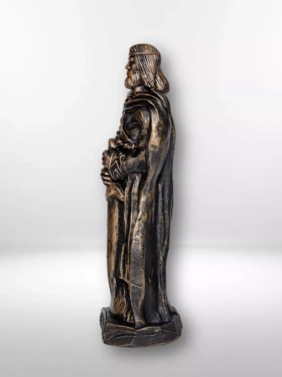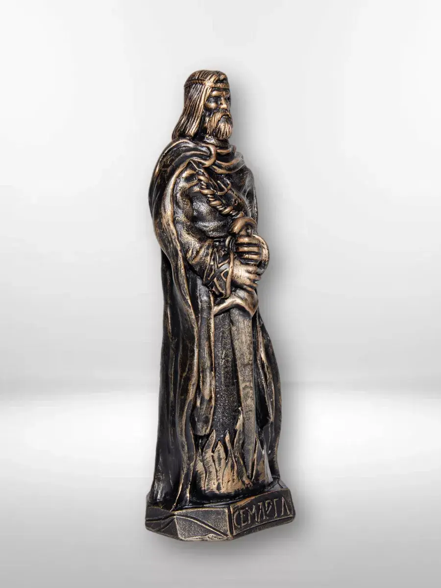 Коллекционные фигурки выполнены из 100%-ого высокопрочного гипса с добавлением пластификатора, который даёт дополнительную прочность изделию из гипса. Высота алтарной статуэтки 19 см. Гипсовая фигурка славянского бога обработана специальным водоотталкивающим средством, благодаря которому не боится воды и грязи. Ручная работа делает каждую алтарную фигурку из гипса уникальной. Структура гипса допускает наличие небольших пор на поверхности, которые не являются браком. Декоративная статуэтка из гипса надежно упакована и имеет несколько степеней защиты.