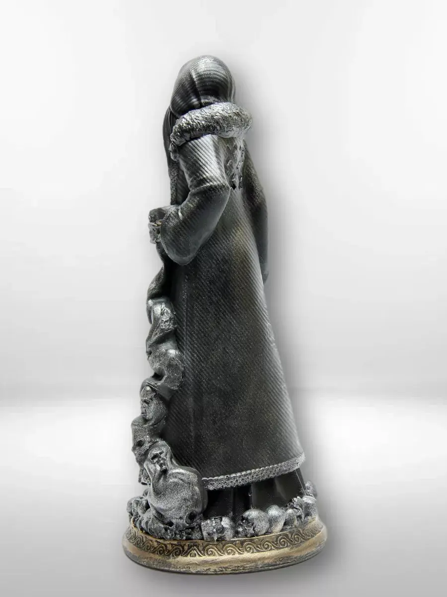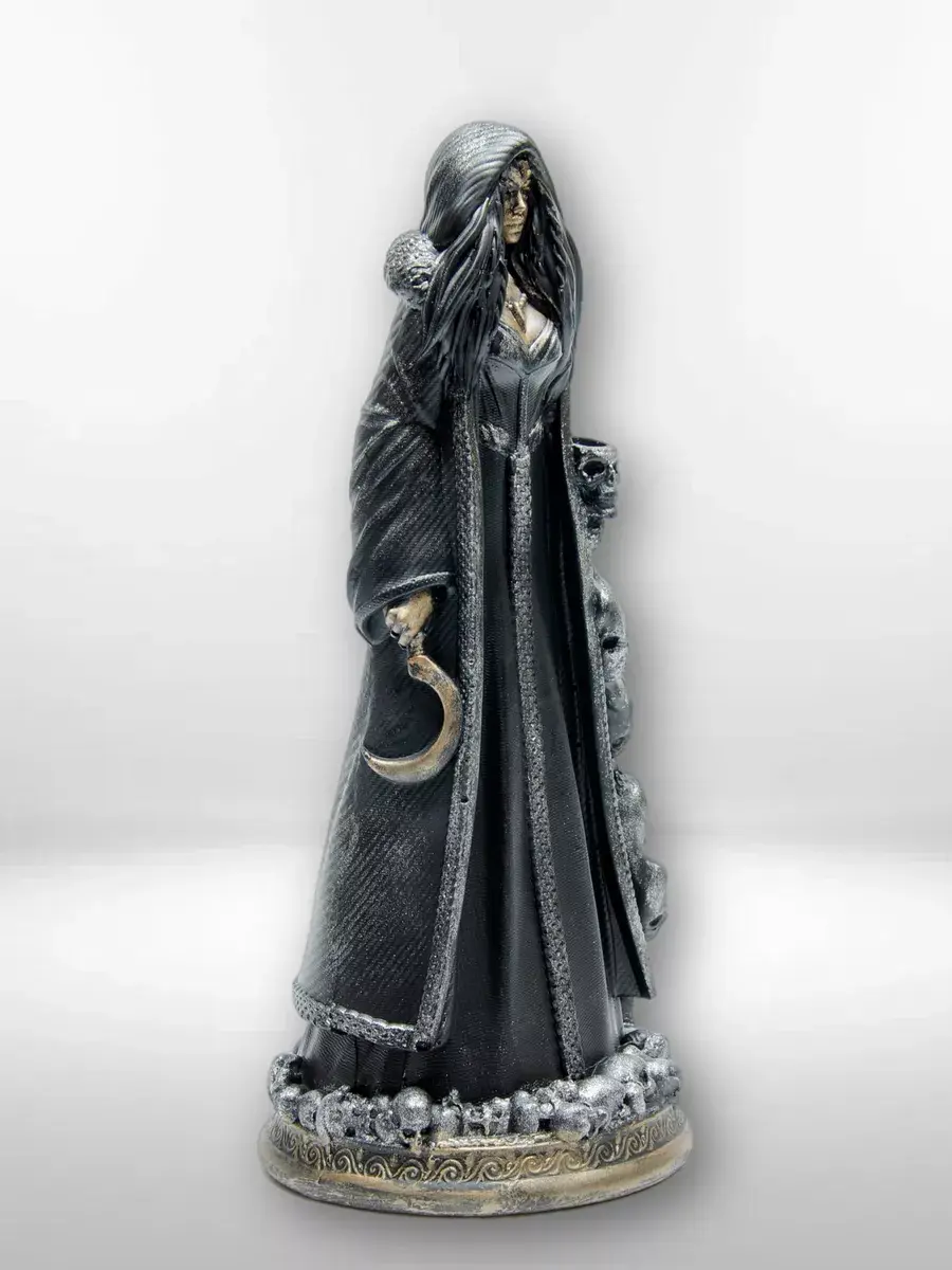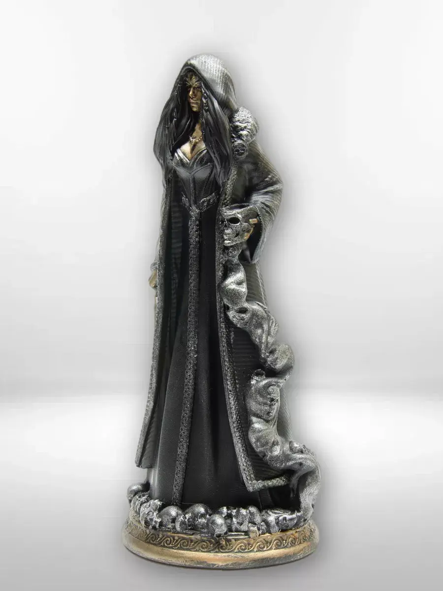 Обережная коллекционная алтарная фигурка статуэтка Богиня Мара - эффектный уникальный и символичный подарок для женщин и мужчин любого возраста! Славянская богиня Mapa (Mopeнa, Морана, Марана) отвечала за многие важные дела. В первую очередь, это богиня зимы, навьего мира и одна из самых сильных богинь славянского пантеона. Она покровительствует всем людям, которые встали на стезю славянской магии. Во вторую очередь, она считается богиней смерти и является образом справедливого правосудия. Коллекционные фигурки выполнены из 100%-ого высокопрочного гипса с добавлением пластификатора, который даёт дополнительную прочность изделию из гипса. Высота алтарной статуэтки 19 см. Гипсовая фигурка славянской богини обработана специальным водоотталкивающим средством, благодаря которому не боится воды и грязи. Ручная работа делает каждую алтарную фигурку из гипса уникальной. Структура гипса допускает наличие небольших пор на поверхности, которые не являются браком. Декоративная статуэтка из гипса надежно упакована и имеет несколько степеней защиты. Обережные фигурки ручной работы – универсальный и оригинальный подарок на любой повод. Подарив такой оберег для дома, вы подарите своим близким удачу в делах, благополучие в доме, защиту от дурного глаза. Славянские кумиры могут стать приятным сюрпризом и идеальным подарком близкому человеку! Оригинальный сувенир для дома прекрасно впишется в любой интерьер дома или рабочего кабинета и будет задавать атмосферу магии и благополучия. Магический оберег для дома подойдет как для любителей магии и мистики, так и для поклонников славянского стиля. Гипсовая статуэтка для дома и интерьера комнаты - это не только прекрасный декоративный элемент для вашего дома, но и отличный способ выразить свою любовь славянской культуре. Кроме того, эти магические украшения для дома могут быть использованы в качестве реквизита для фотостудии или фотосессии. Славянский оберег для дома - универсальный вариант подарка на любой повод и может быть использован в качестве памятного сувенира для женщин, декоративной интерьерной статуэтки для декора интерьера офиса и рабочего стола, домашнего декора из гипса для интерьера дома, а также в качестве сувенира и статуэтки для женщин любого возраста. Интерьерная статуэтка из гипса многофункциональна и может послужить как защитный оберег от сглаза для дома, стильный элемент интерьерного декора дома и офиса, необычный предмет интерьера для дома, уникальное украшения для дома и офиса, а также как семейный оберег для женщин и настольный оберег для девушек. Наша сувенирная продукция в виде декоративных гипсовых фигурок для женщин это полезная и стильная домашняя принадлежность, которая является не только красивым элементом дизайна дома и офиса и украшением домашнего интерьера, но и оригинальной подарочной фигуркой статуэткой. Миниатюрные фигурки для интерьера станут практичным и универсальным подарком. Особенно рады подарку будут ваши близкие и друзья, которые ценят необычные и стильные предметы интерьера, а также коллекционеры фигурок духов, славянских богов и многого другого. Фигурка со славянским дизайном станет оригинальным подарком любимой женщине, коллегам, деловым партнерам и для всех представителей прекрасного пола: мам, жен, дочерей, сестер. Так что, если в