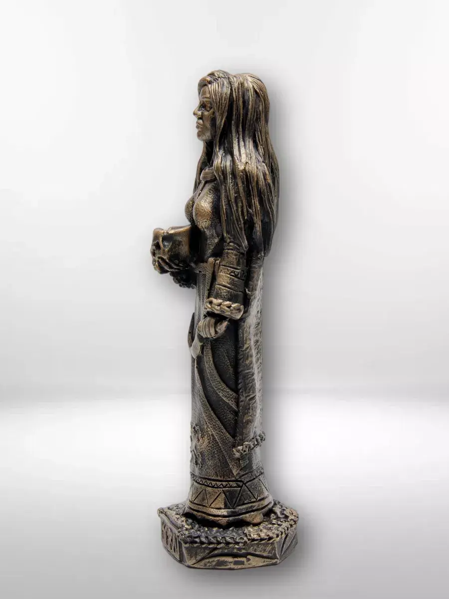Коллекционные фигурки выполнены из 100%-ого высокопрочного гипса с добавлением пластификатора, который даёт дополнительную прочность изделию из гипса. Высота алтарной статуэтки 16,5 см. Гипсовая фигурка славянской богини обработана специальным водоотталкивающим средством, благодаря которому не боится воды и грязи. Ручная работа делает каждую алтарную фигурку из гипса уникальной. Структура гипса допускает наличие небольших пор на поверхности, которые не являются браком. Декоративная статуэтка из гипса надежно упакована и имеет несколько степеней защиты.