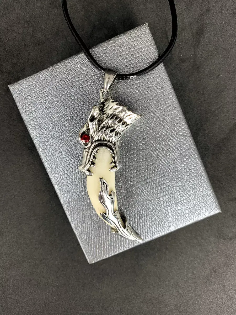 Крупная подвеска Волк подойдёт для ценителей натуральных предметов. Длина магического защитного оберега на шею 6-8 см в зависимости от модели (указаны на фото). В комплекте с обережным украшением прилагается шнурок на шею длиной 55 см и с возможностью регулирования (+ 5 см). Кулон подвеска на шею сделана из прочного гипоаллергенного сплава, который не окисляется и не является причиной появления раздражения на коже. При бережной эксплуатации талисман на шею с натуральным волчьим клыком прослужит много лет и будет выглядеть идеально. Украшение на шею упаковано в подарочную коробку и станет идеальным подарком близкому человеку.