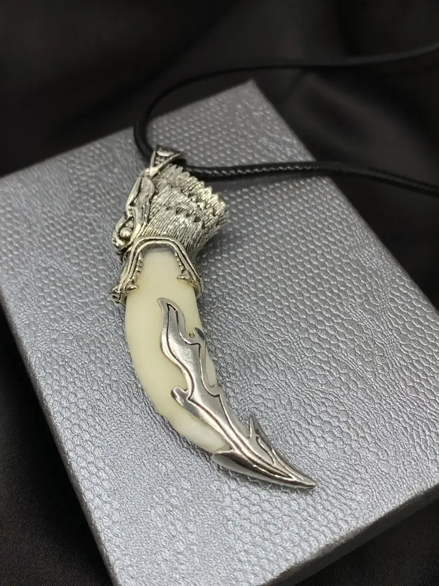 Крупная подвеска Волк подойдёт для ценителей натуральных предметов. Длина магического защитного оберега на шею 6-8 см в зависимости от модели (указаны на фото). В комплекте с обережным украшением прилагается шнурок на шею длиной 55 см и с возможностью регулирования (+ 5 см). Кулон подвеска на шею сделана из прочного гипоаллергенного сплава, который не окисляется и не является причиной появления раздражения на коже. При бережной эксплуатации талисман на шею с натуральным волчьим клыком прослужит много лет и будет выглядеть идеально. Украшение на шею упаковано в подарочную коробку и станет идеальным подарком близкому человеку.