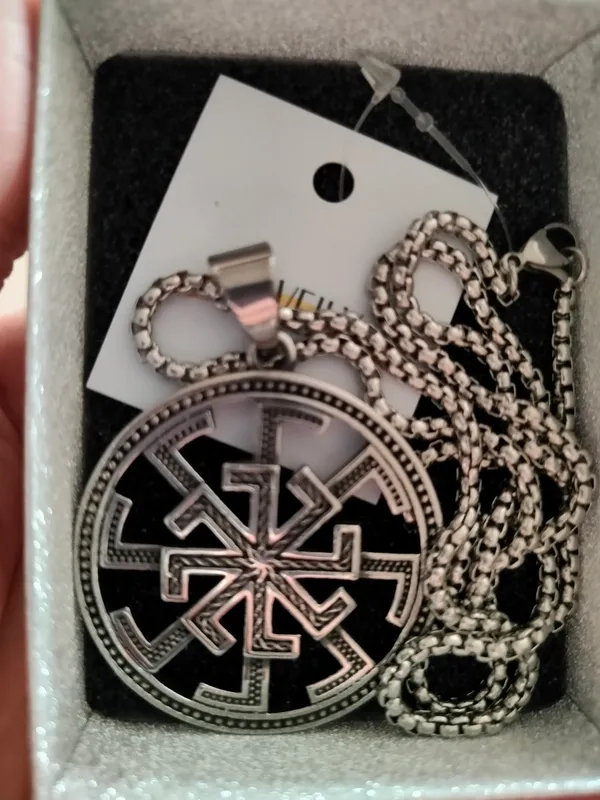 Мы предлагаем готовый комплект: славянский оберег Световит на цепочке из хирургической стали.