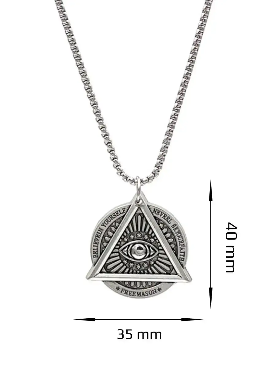 серебристый защитный магический кулон оберег амулет подвеска из стали Глаз Всевидящее Око на цепочке,
