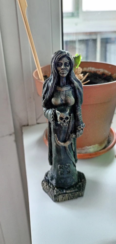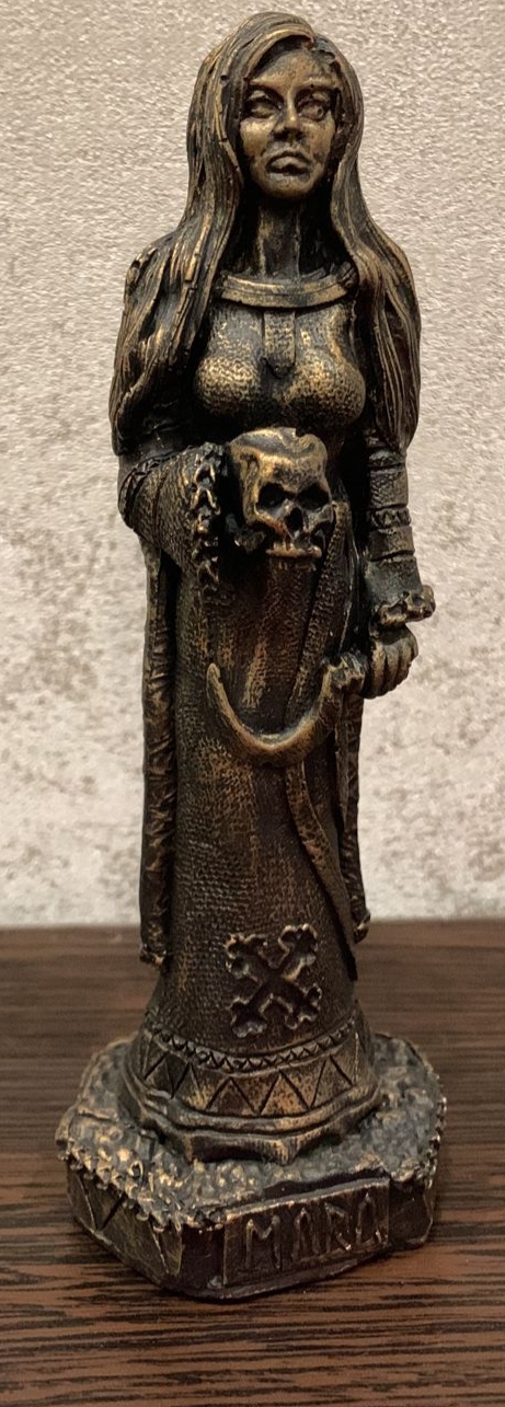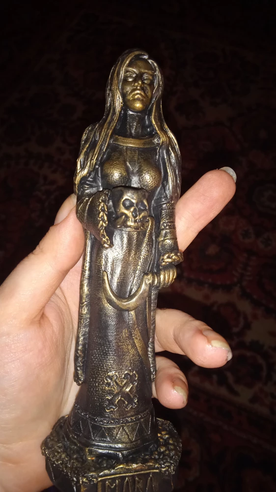 Статуэтка «Богиня Мара» – это воплощение одной из самых могущественных и суровых богинь славянского пантеона. Богиня зимы, смерти и справедливого возмездия, хозяйка навьего (загробного) мира. Ее образ – не символ зла, а олицетворение неизбежного закона природы, завершения циклов, высшей справедливости и тайной магии. Сильнейший оберег для практикующих и тех, кто ищет защиты в мире духов.