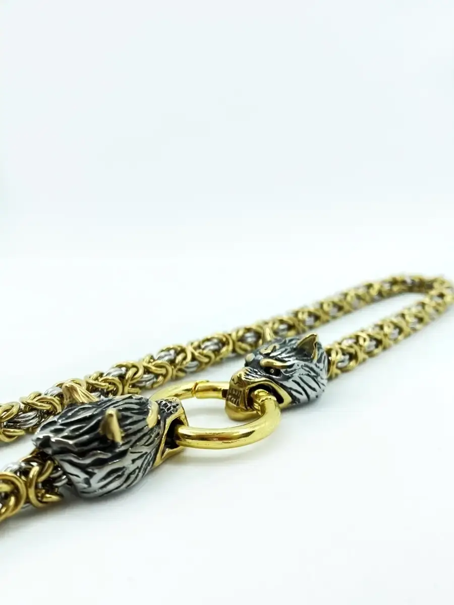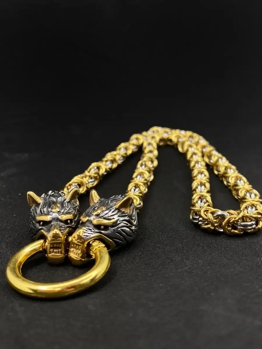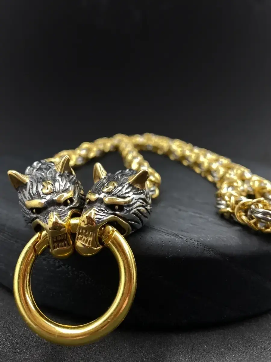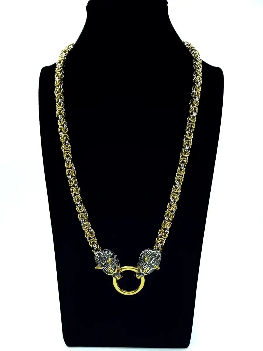 Крупная объемная славяно скандинавская стальная цепь с кольцом и волками