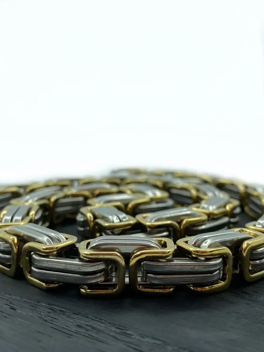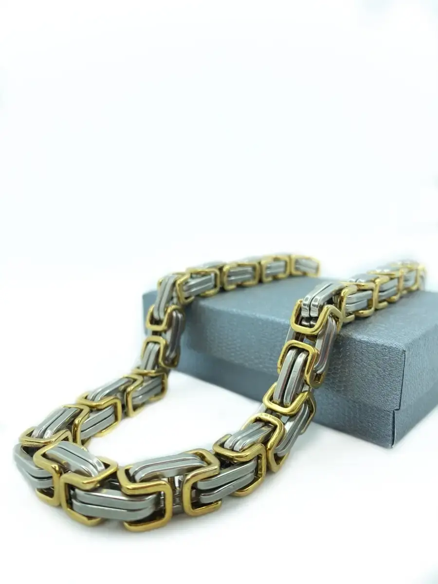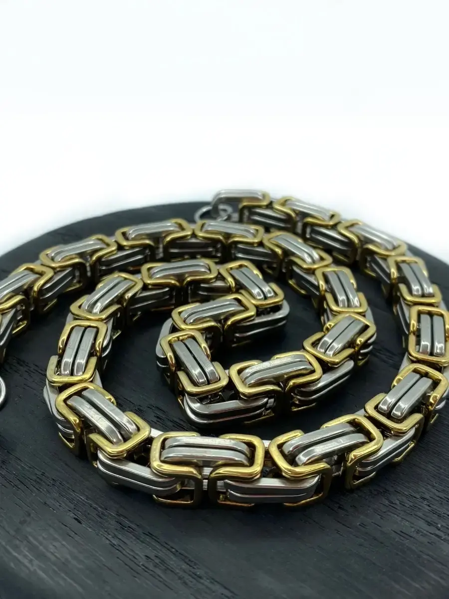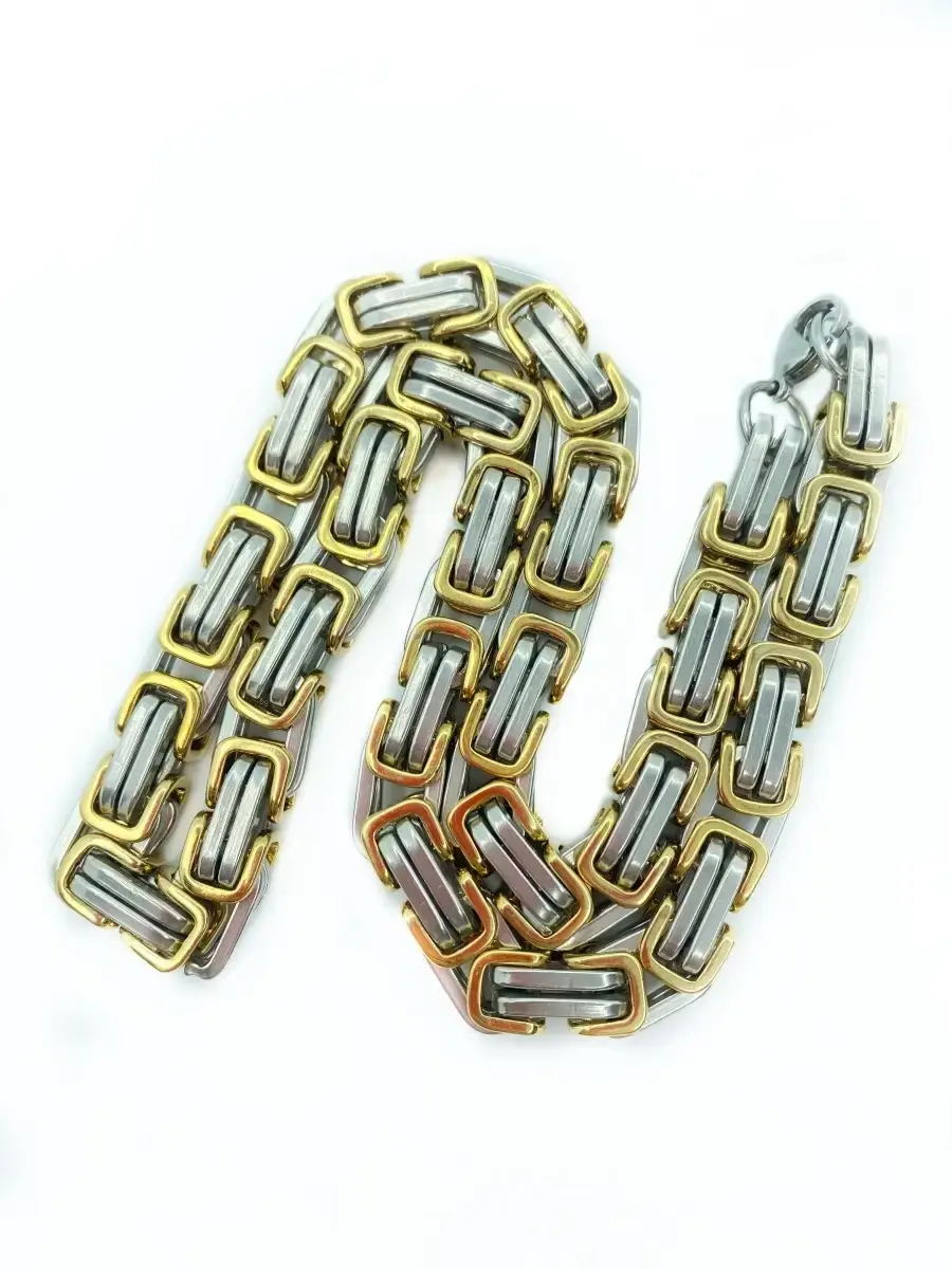 Наши мужские бижутерные украшения из стали могут быть использованы и как цепочки для крестика подвески, и как просто брутальный и стильный аксессуар. Серебристый и золотистый цвет широкой крупной цепи - отличное сочетание для тех, кто привык выделяться из толпы. Стильная стальная цепочка – отличное украшение для мужчин, которые ценят качественные аксессуары. Порадуйте себя и близких отличным подарком!