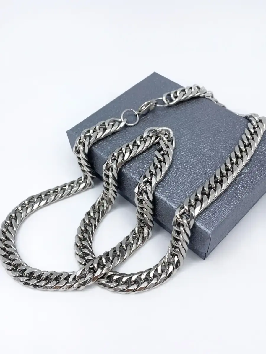Длинная стальная цепочка унисекс - подойдёт и для мужчин, и для женщин. Универсальная цепочка представлена в трех вариантах 60 см, 70 см и 60 см толстого плетения. Бижутерная цепь на шею сделана из прочной нержавеющей хирургической стали 316L, которая не окисляется и не является причиной появления раздражения на коже.