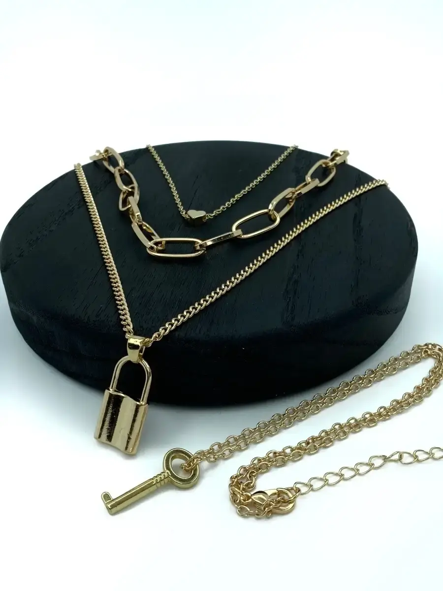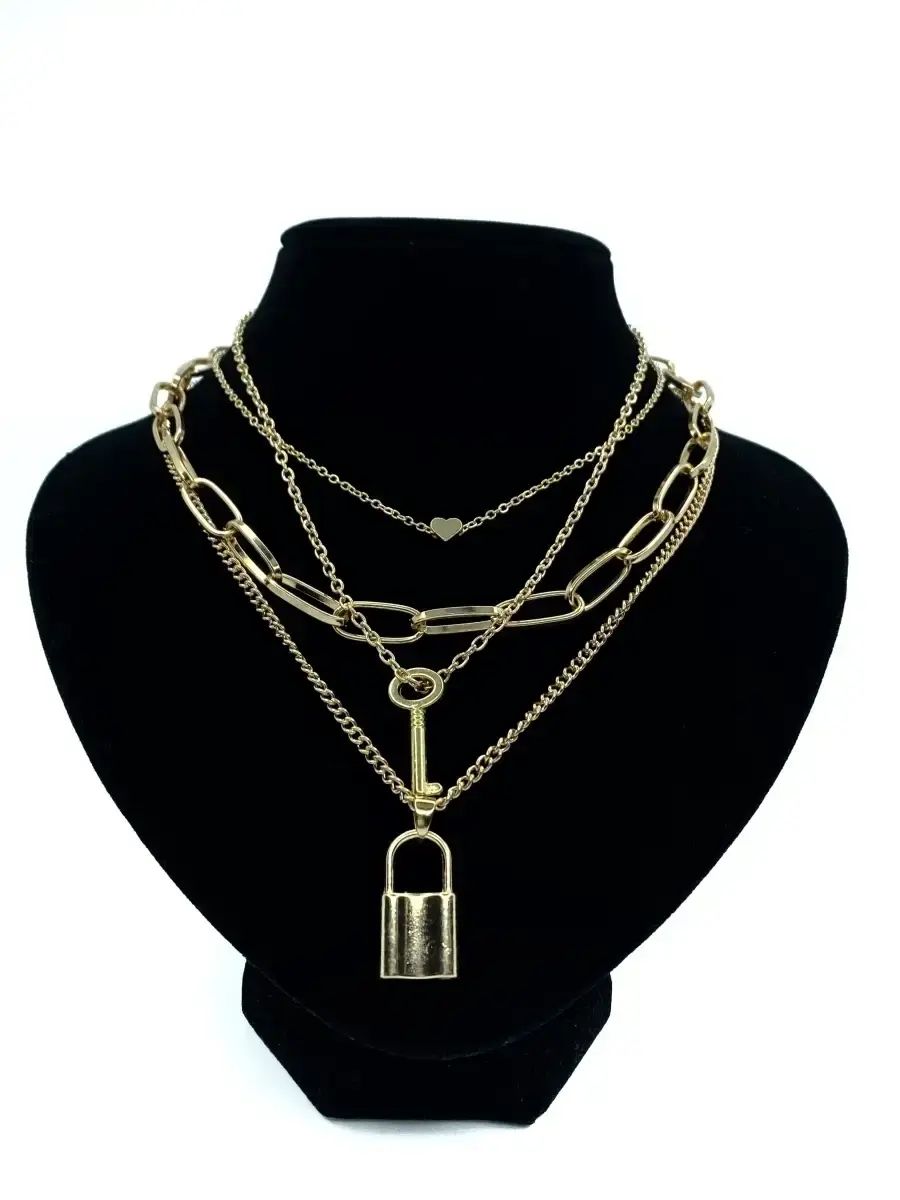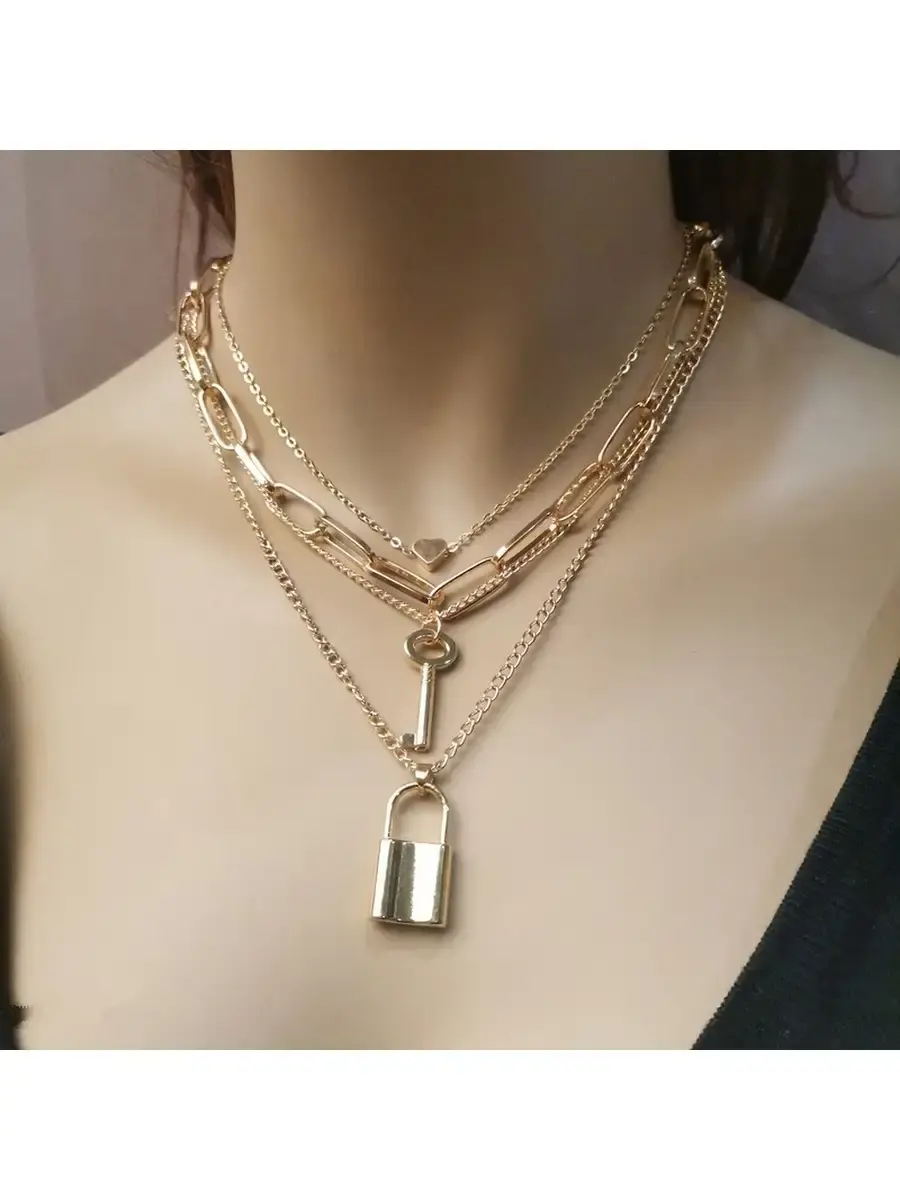 многослойная цепочка с подвесками ключ с замком и сердечком