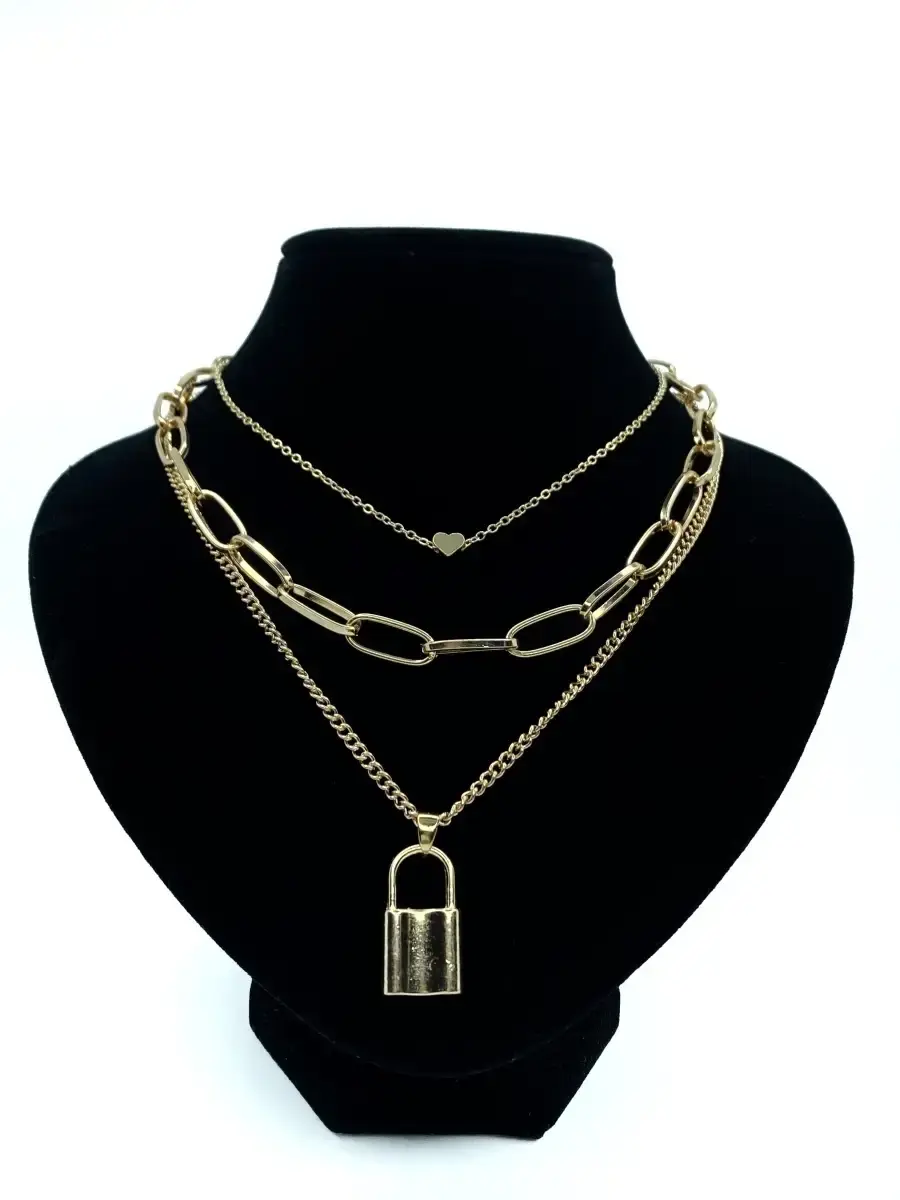 Две женские цепочки - удлиненная короткая цепь с кулоном ключик длиной 44 см (длина регулируется, +7 см) и тройная цепочка с подвесками замочек и сердечко длиной длиной 38, 42 и 48 см; застежки карабин. Массивные женские цепочки с кулонами подвесками на шею (4 в 1) сделаны из прочного гипоаллергенного сплава, который не окисляется и не является причиной появления раздражения на коже. При бережной эксплуатации короткие бижутерные цепи с подвесками прослужат много лет и будет выглядеть идеально. Бижутерное украшение для женщин упаковано в подарочный мешочек и станет идеальным подарком близкому человеку.