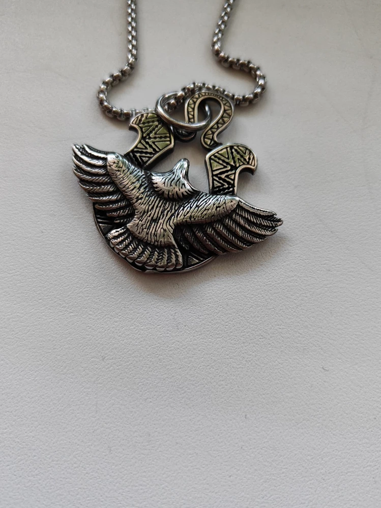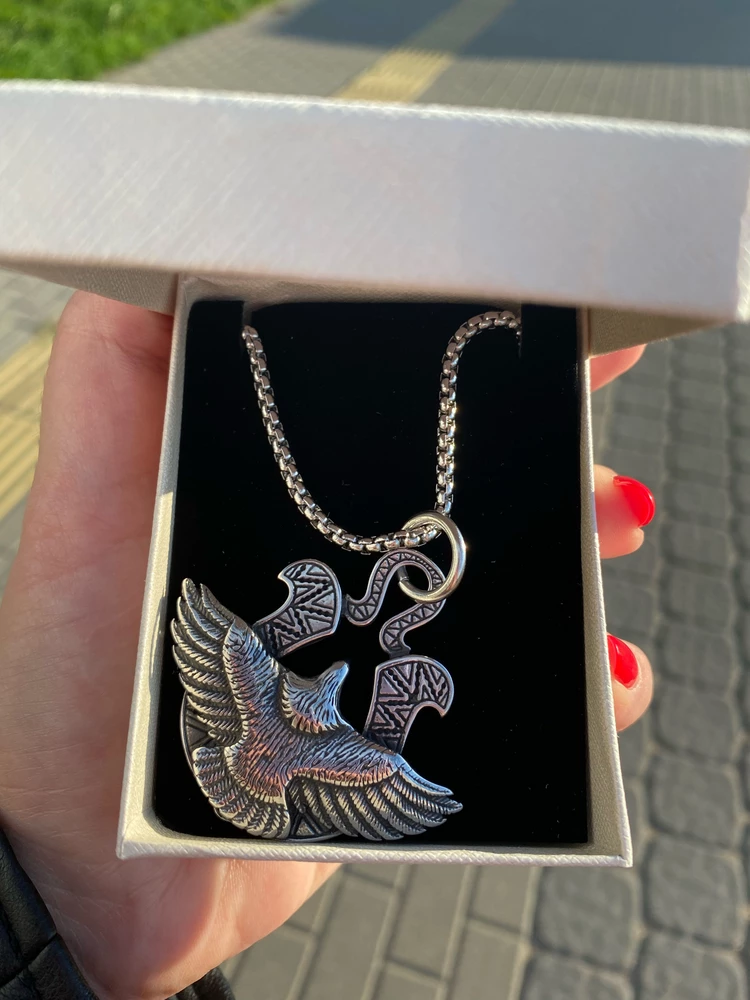 Комплектация: Широкий амулет (5 см) на солидной цепи длиной 60 см (панцирное плетение). Смотрится мощно и статусно.