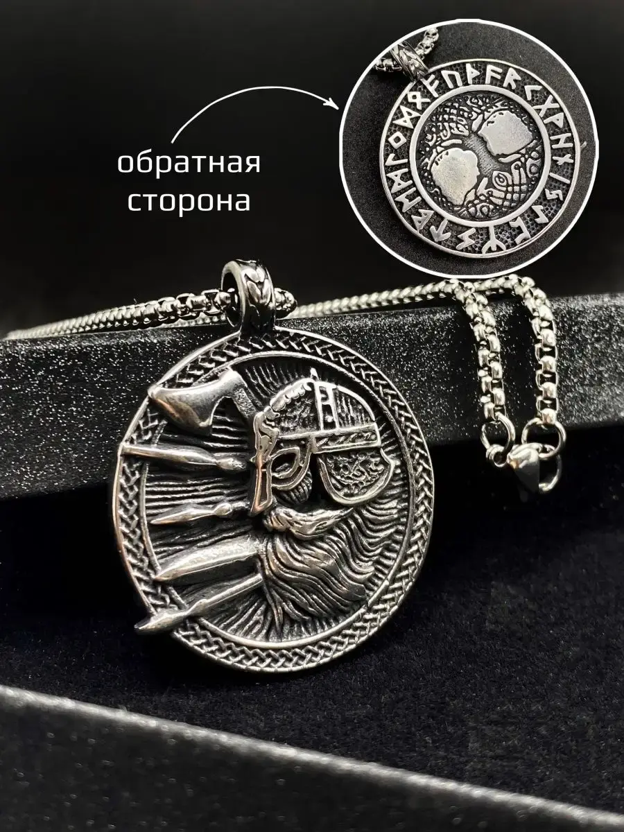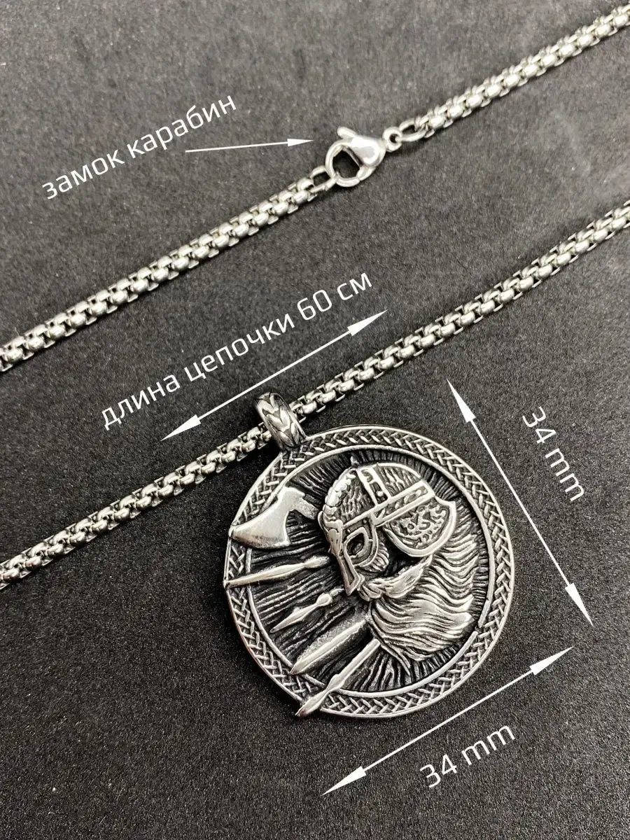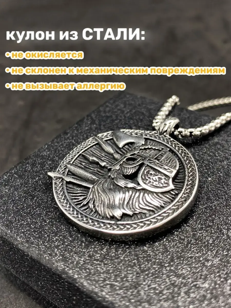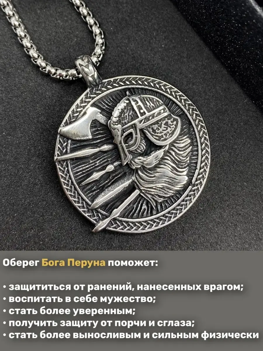 Славянская подвеска кулон Бог Перун на длинной серебристой цепочке из стали - эффектный уникальный и символичный подарок в красивой упаковке!
