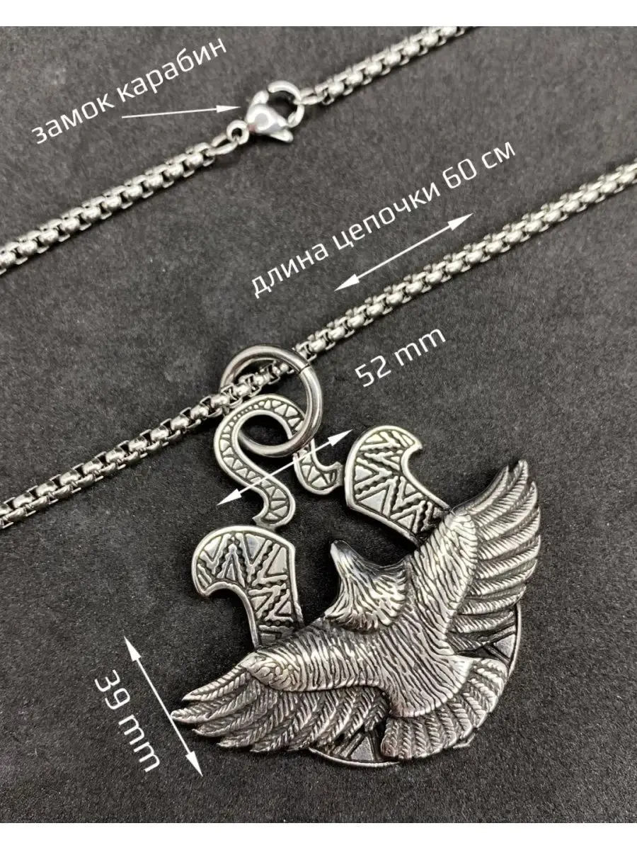 Длинная серебристая цепочка из стали со славянской подвеской кулоном Парящий Орёл - один из самых сильных и позитивных оберегов наших предков!