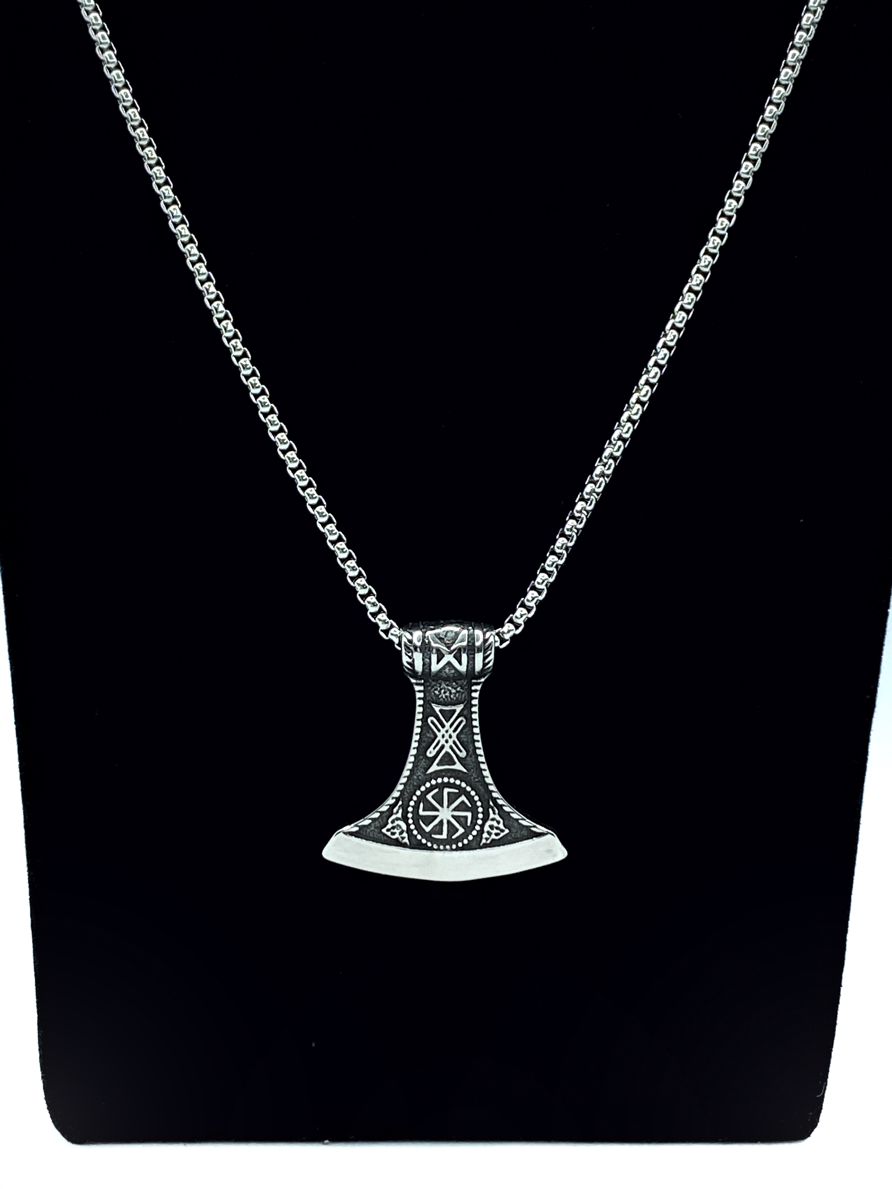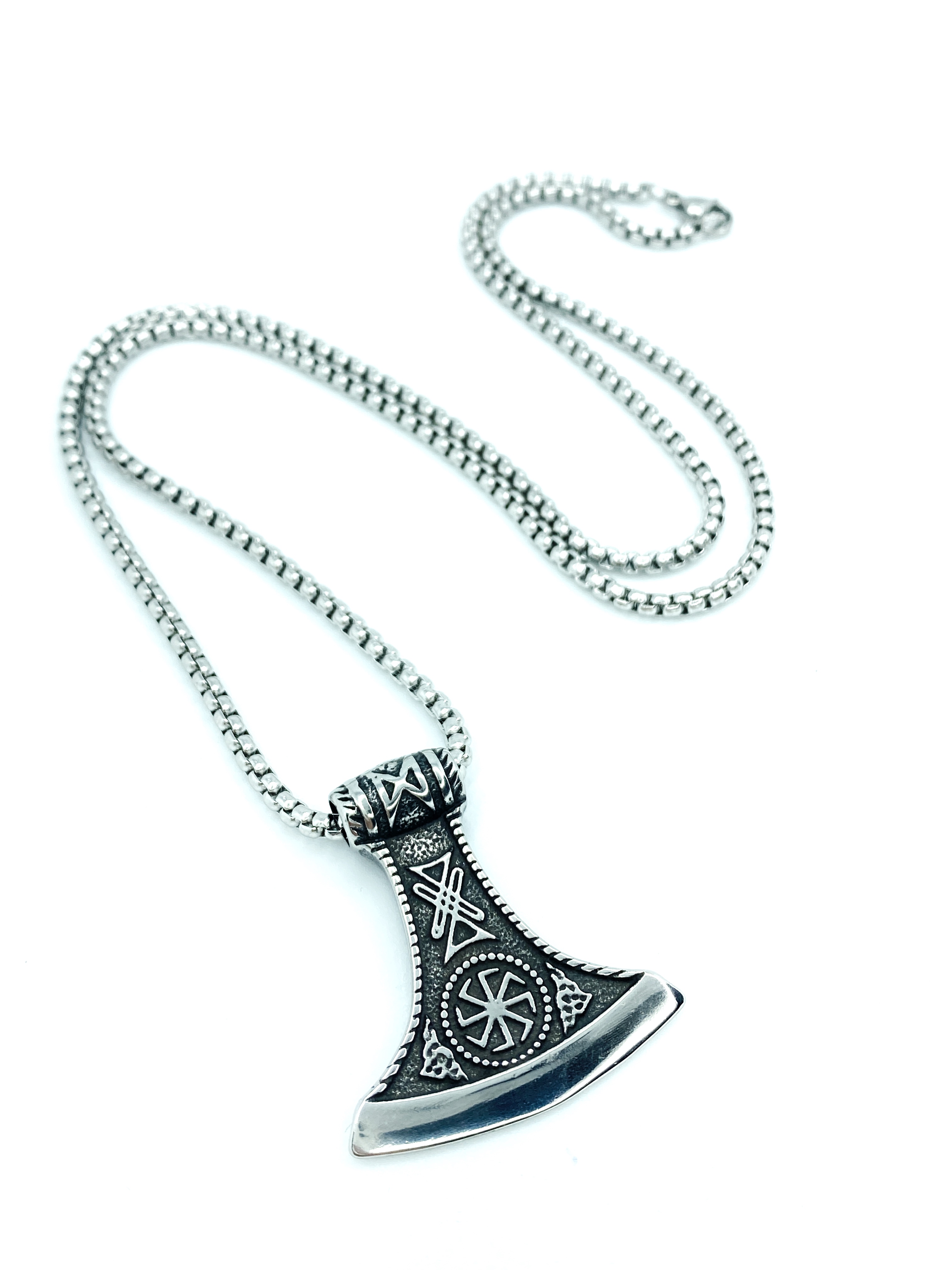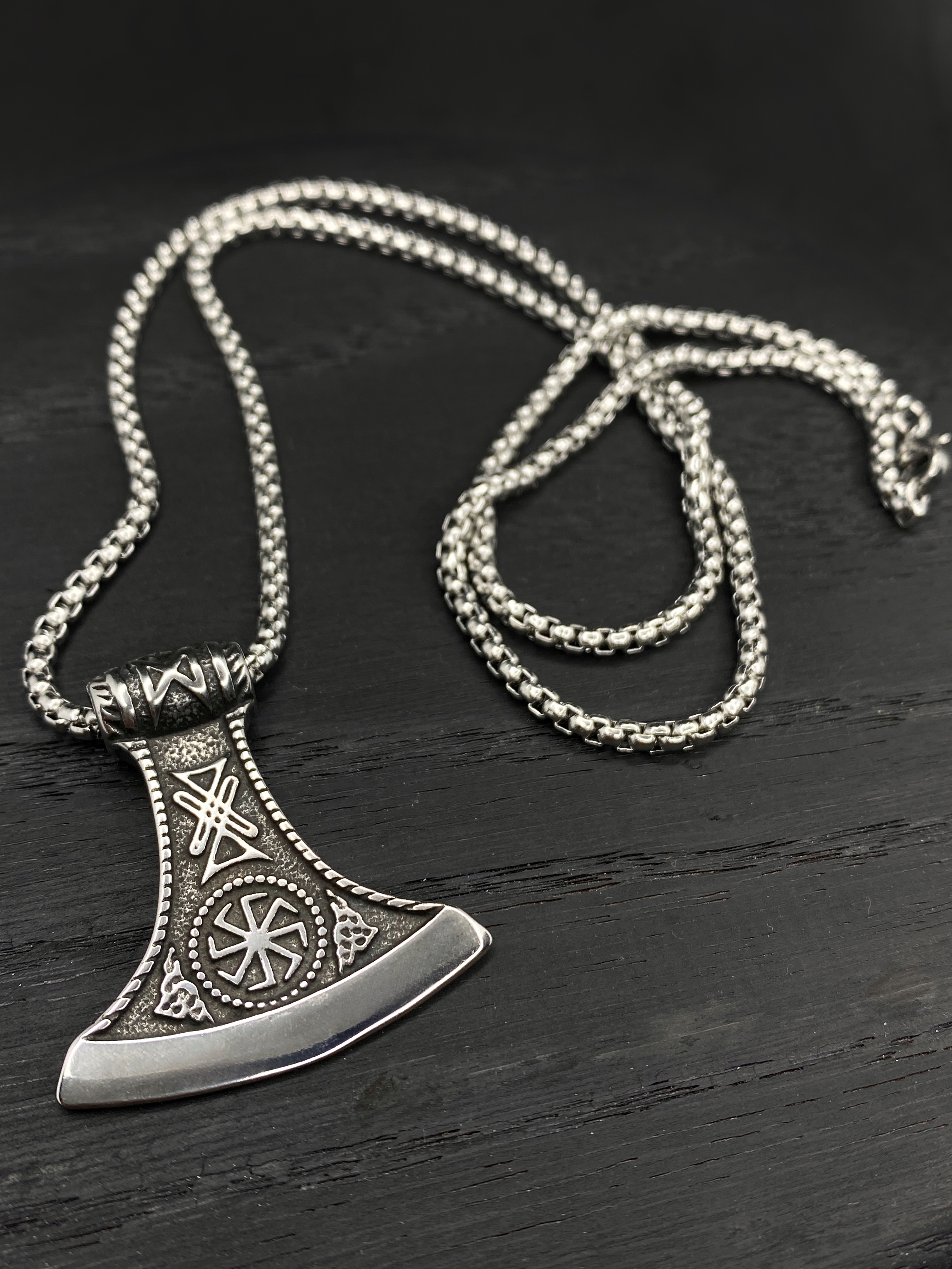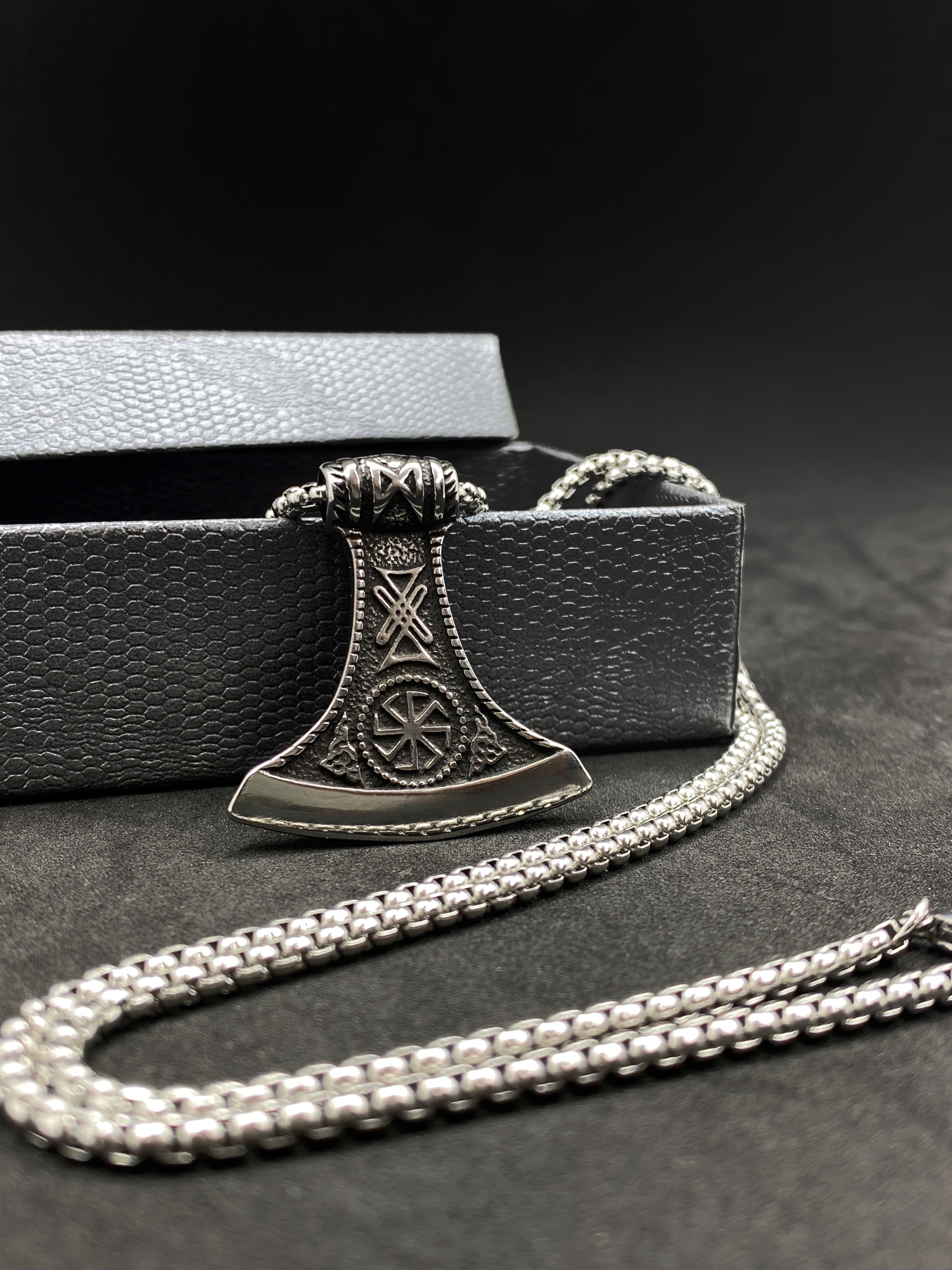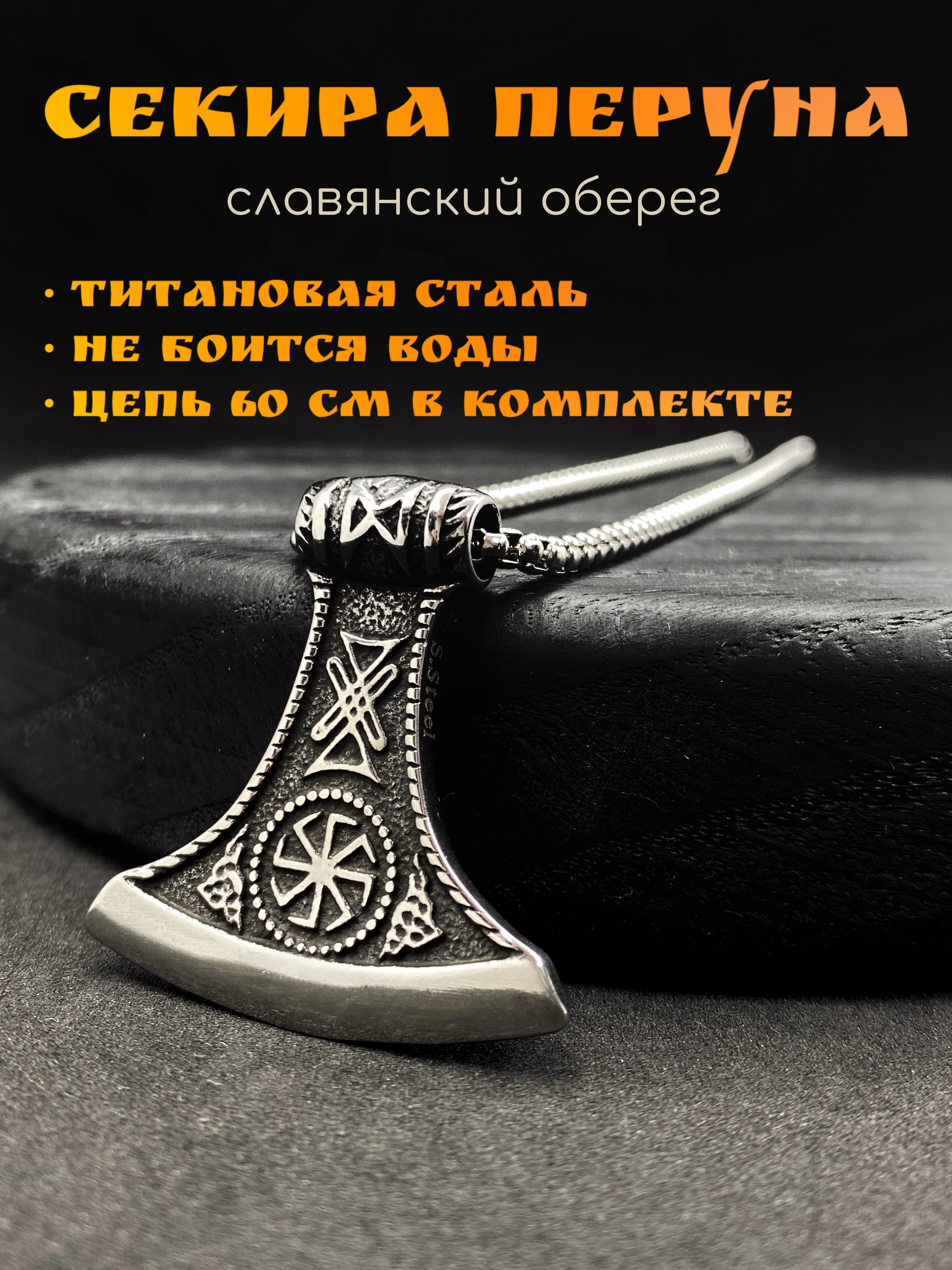 Цепочка со славянским оберегом Секира Перуна (Гром Секира Тора), усиленный символами Коловрат и Звезда Руси - эффектный подарок в красивой упаковке!