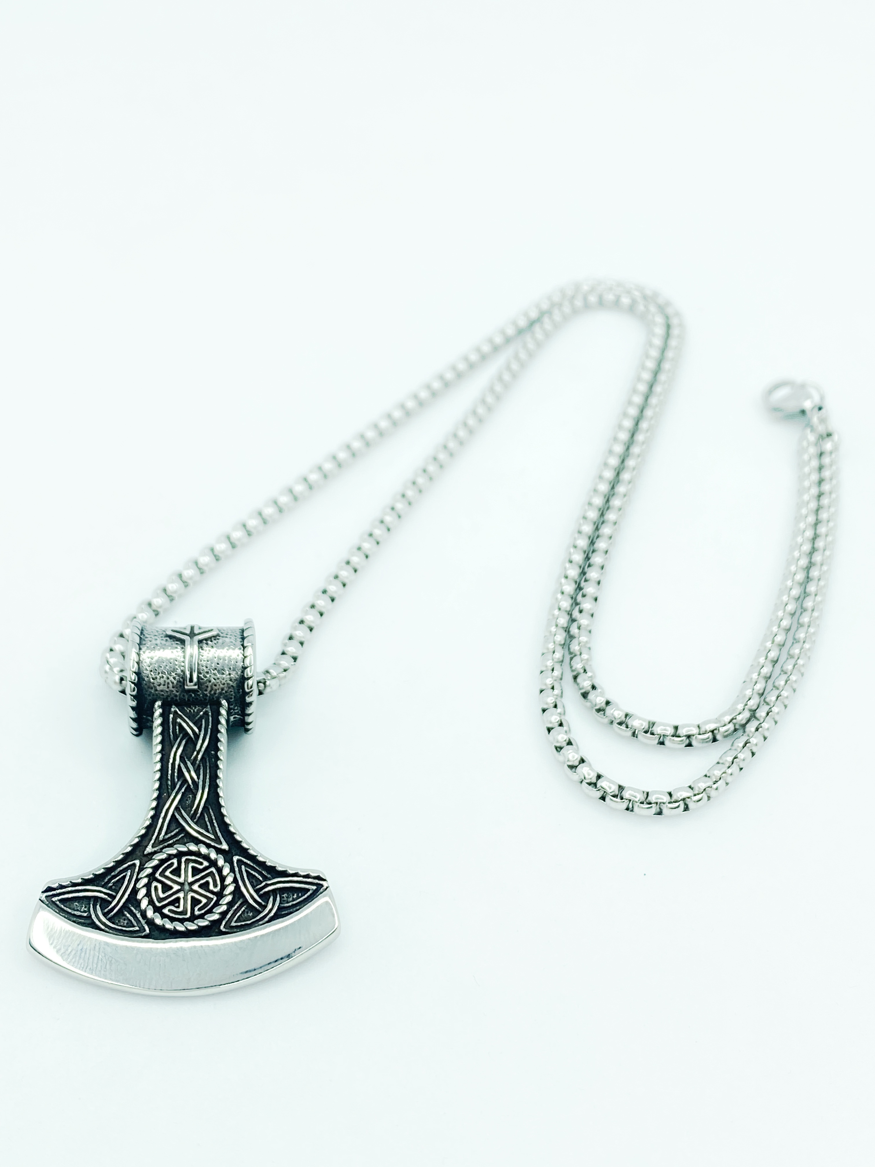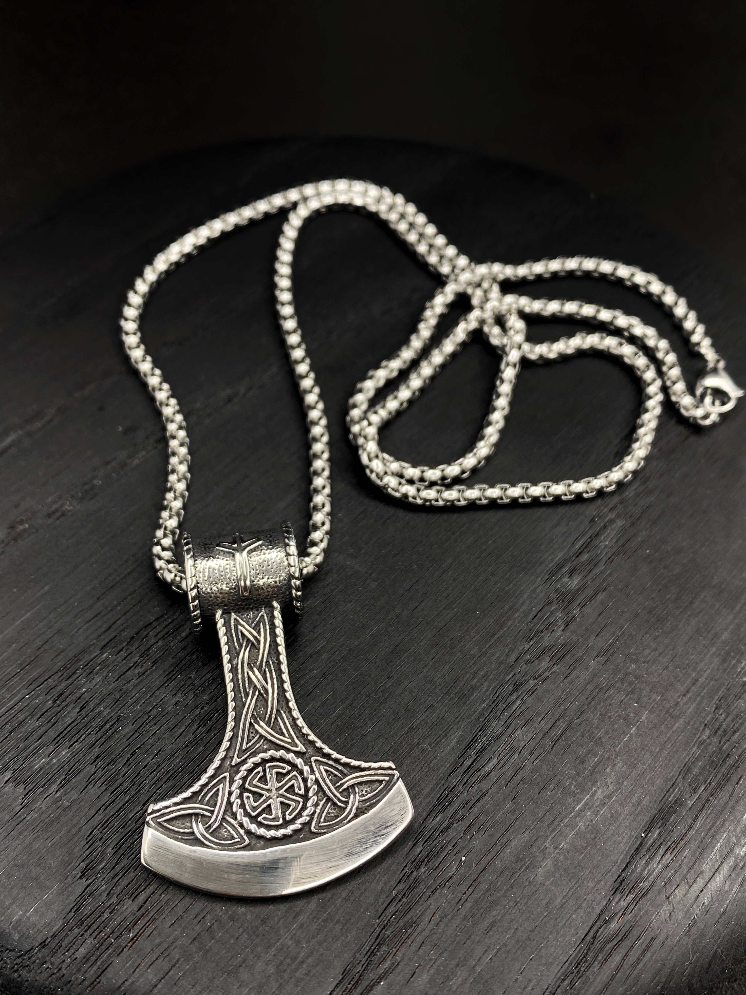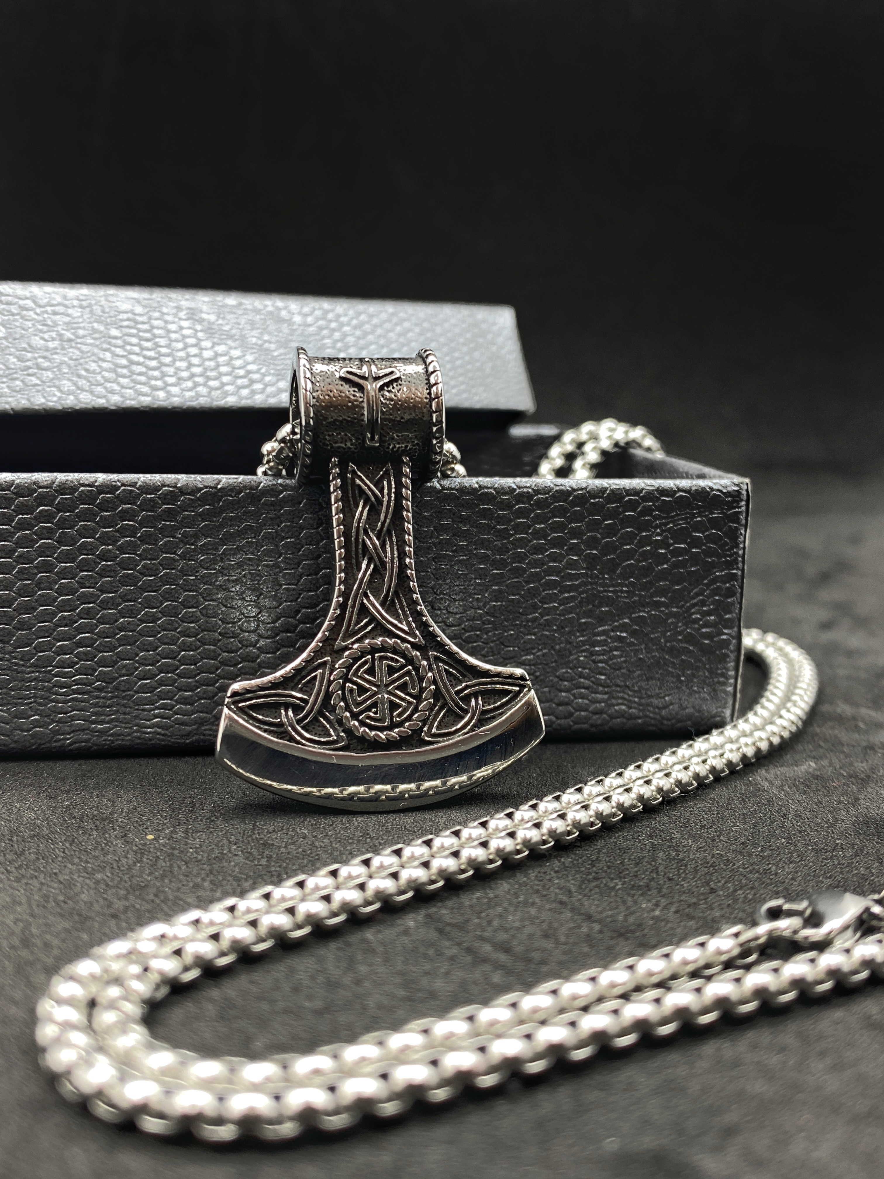 Цепочка со славянским оберегом Секира Перуна (Гром Секира Тора), усиленный символами Коловрат - эффектный подарок для мужчин в красивой подарочной коробке!