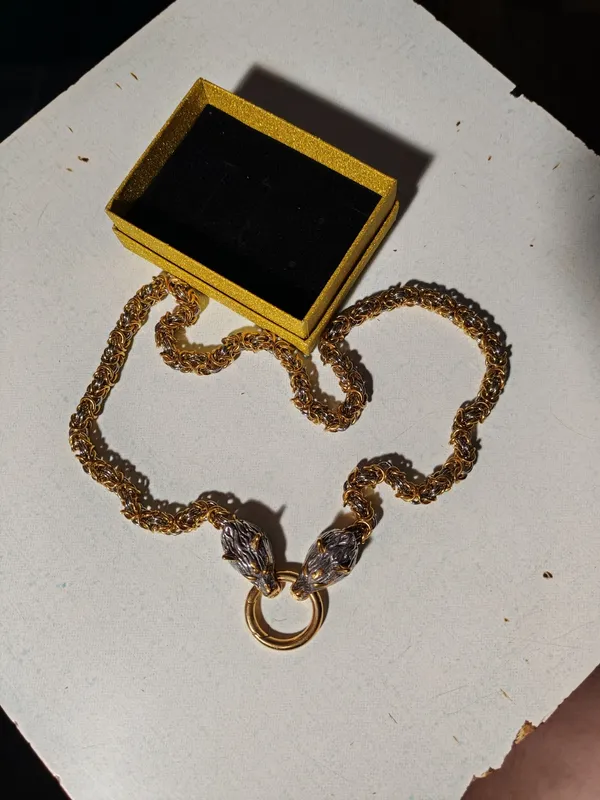 Центральная подвеска: Интегрированное в дизайн цепи кольцо с волками — символ верности, братства, силы семьи (стаи) и свободолюбия. Это амулет подвеска Волк, который не нужно докупать отдельно.