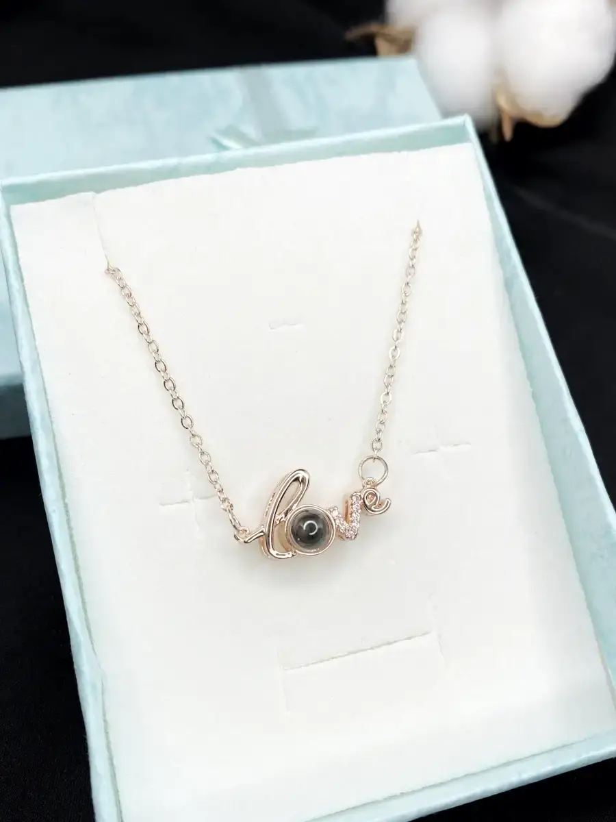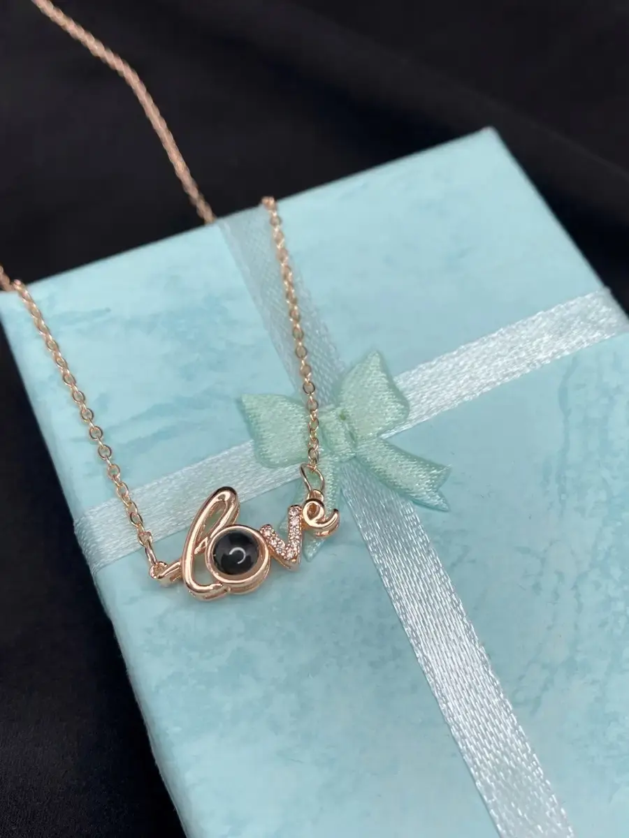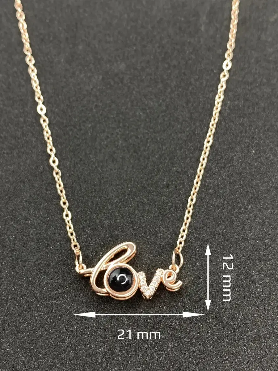Легкая короткая золотистая женская цепь колье с подвеской LOVE и проекцией I Love You на 100 языка