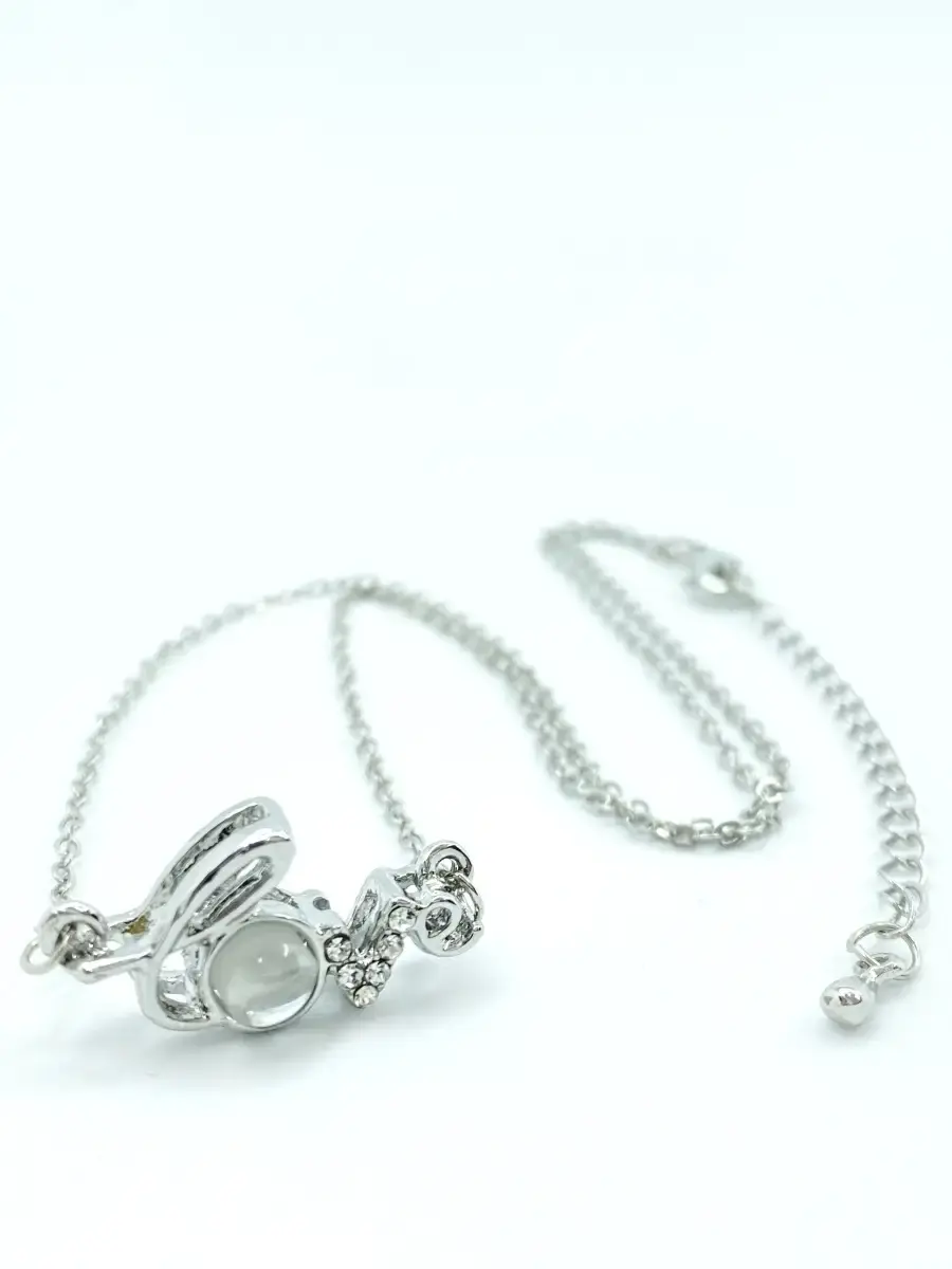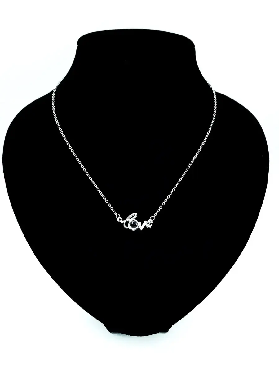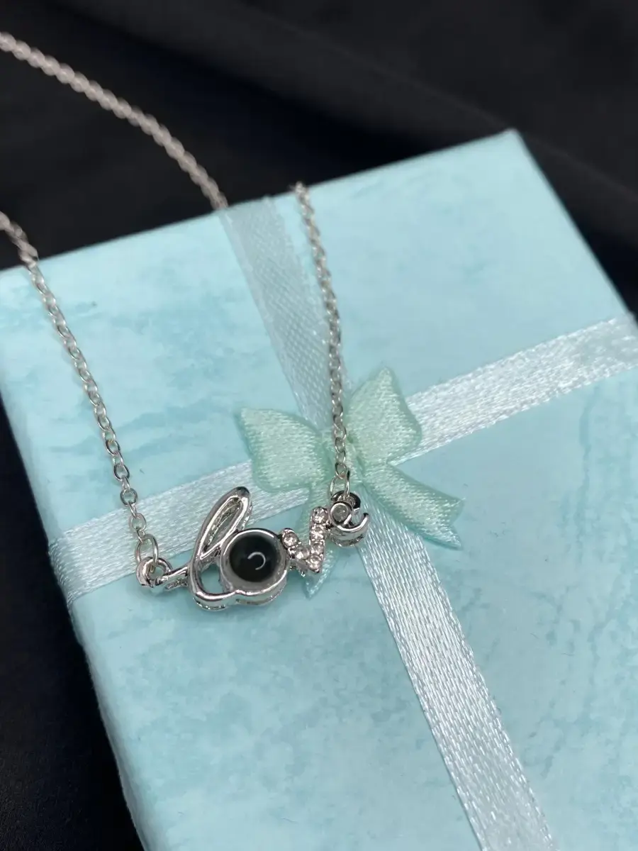 Легкая короткая серебристая женская цепь колье с подвеской LOVE и проекцией I Love You на 100 языка