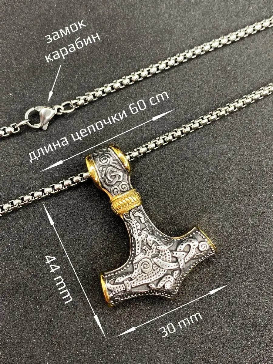 Длинная стальная мужская цепочка на шею с несколькими вариантами славяно скандинавских подвесок кулонов Гром Секира Перуна (Тора) из стали - оригинальный и символичный подарок для мужчин в красивой подарочной коробке!