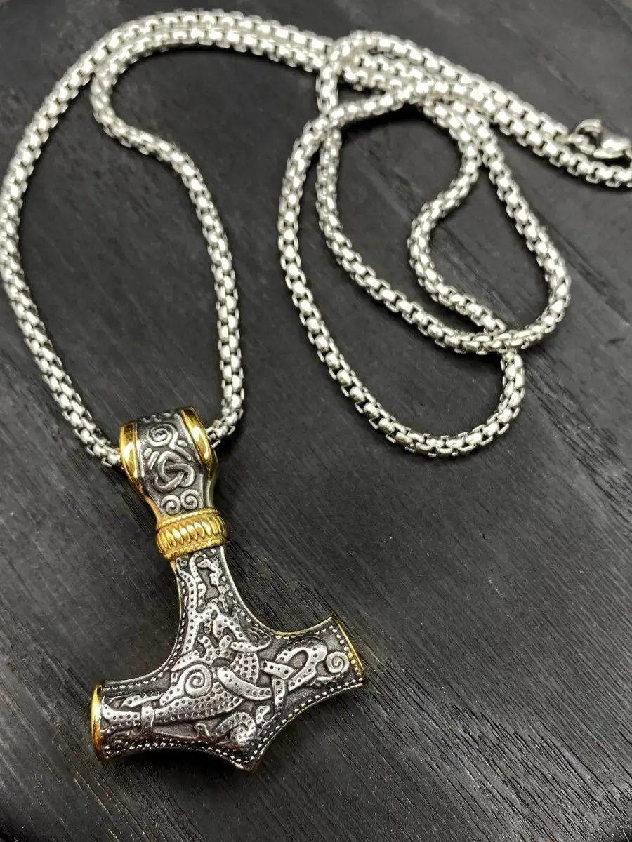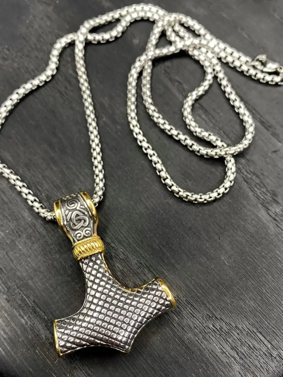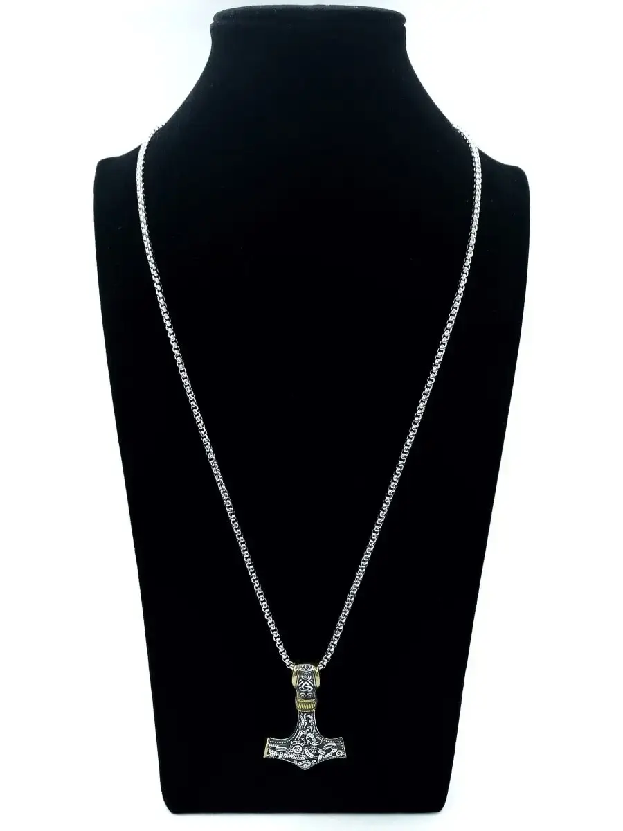 Славяно скандинавский оберег Гром Секира Перуна (Тора) на мужской цепи - символ военной доблести и отваги, поддерживающий дух и мужественность; подойдёт для сильных и смелых мужчин и сделает их привлекательными в глазах женщин, а во всех остальных делах будет притягивать успех. Мужская цепочка со скандинавским украшением Гром Секира универсальна и может быть использована как защитный мужской оберег талисман, красивый аксессуар для мужчин или как обычная мужская цепочка для парней. Славяно скандинавский кулон подвеску на цепочке могут носить мужчины любого возраста.