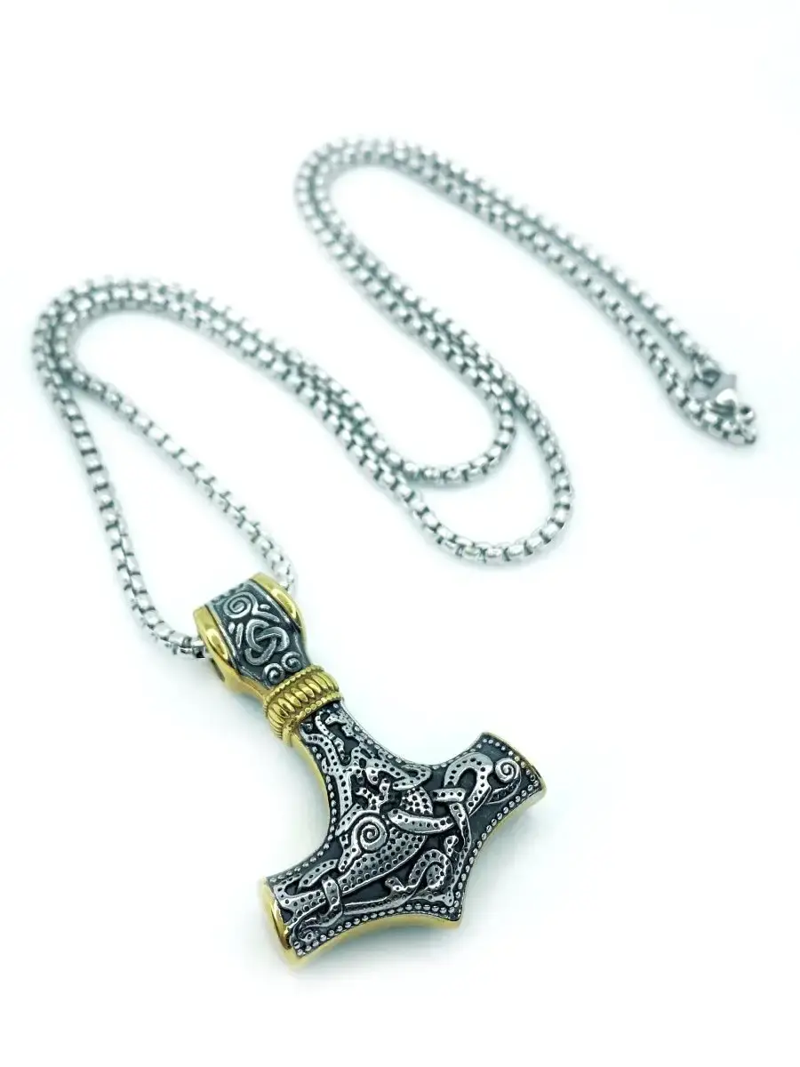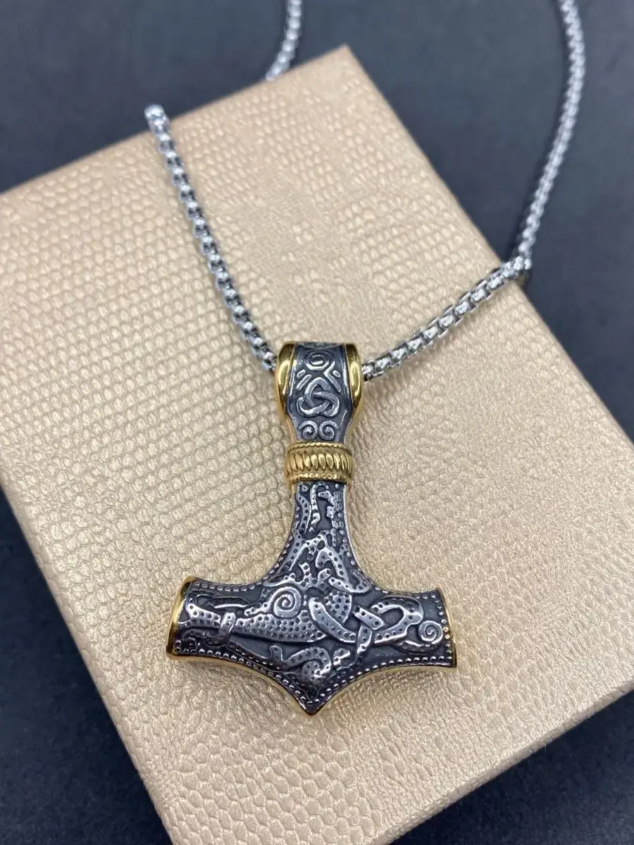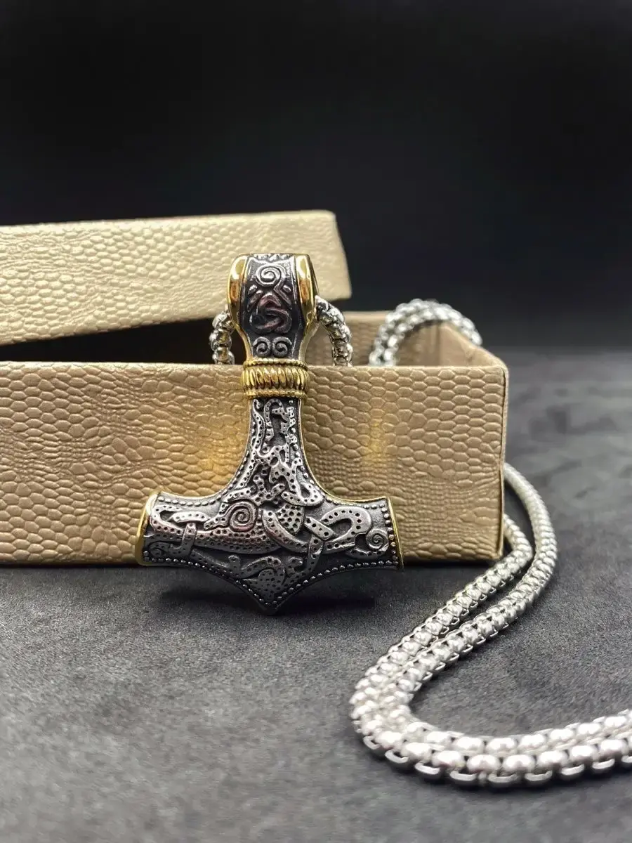 Славяно скандинавский оберег Гром Секира Перуна (Тора) на мужской цепи - символ военной доблести и отваги, поддерживающий дух и мужественность; подойдёт для сильных и смелых мужчин и сделает их привлекательными в глазах женщин, а во всех остальных делах будет притягивать успех. Мужская цепочка со скандинавским украшением Гром Секира универсальна и может быть использована как защитный мужской оберег талисман, красивый аксессуар для мужчин или как обычная мужская цепочка для парней. Славяно скандинавский кулон подвеску на цепочке могут носить мужчины любого возраста.