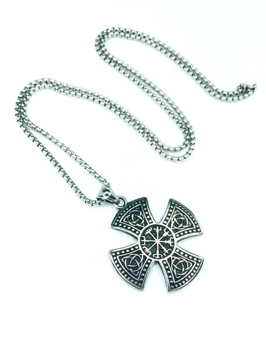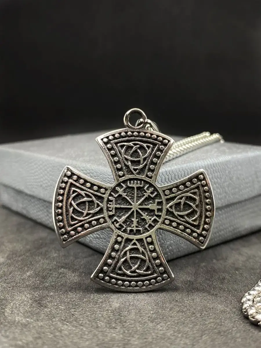 Кельтский крест – это уникальный по своей сути символ, ведь в себе он сочетает сразу несколько культур. Это символ мира, гармонии, равновесия и процветание в любой из многих сфер жизни. Магический амулет оберегает от зла, дарует человеку мудрость, сочетает и мужское, и женское начало. Усилен символами Вегвизир и Триглав, что делает данное украшение очень мощным славянским и скандинавским оберегом.