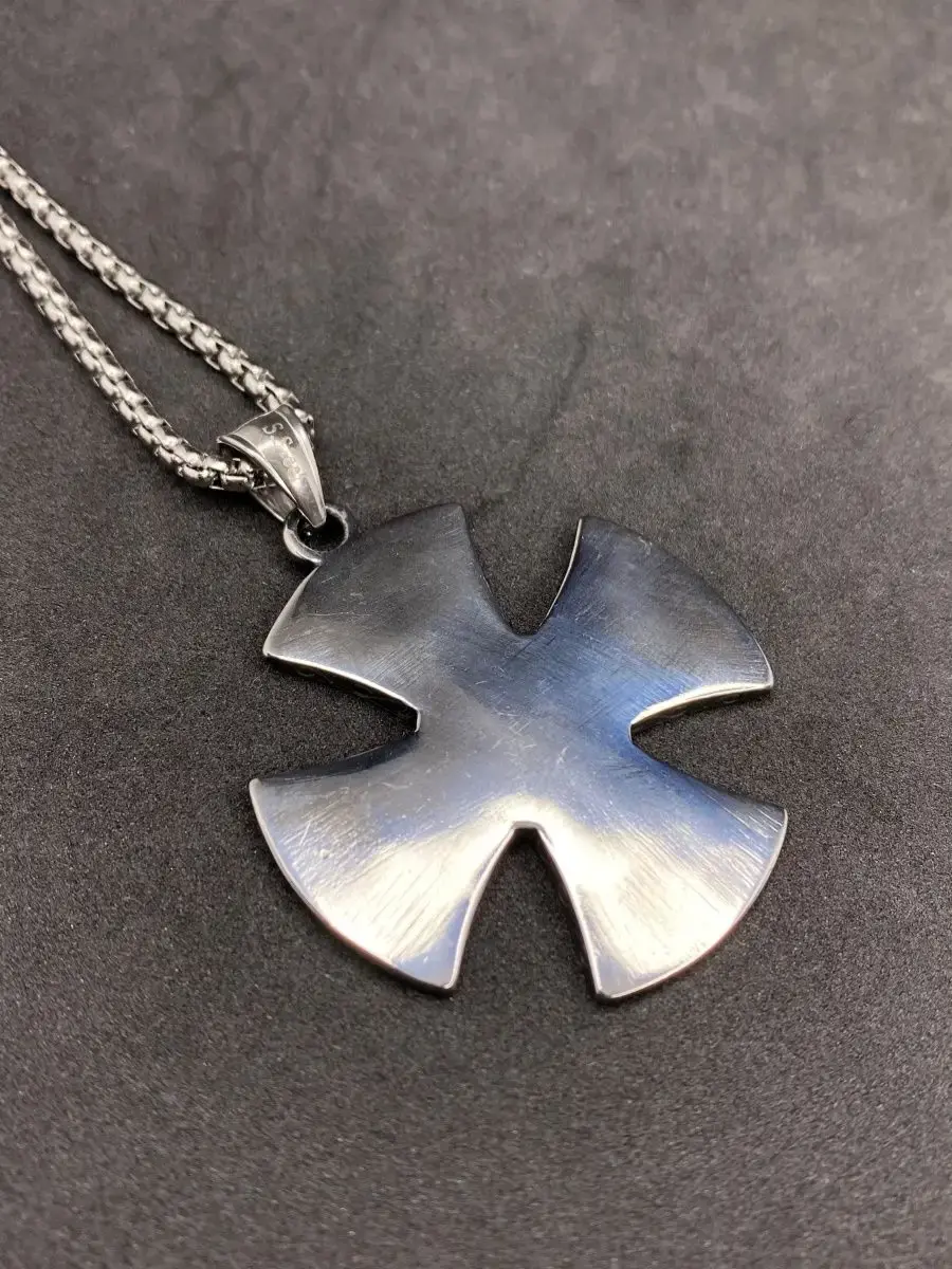 Крупный кельтский кулон оберег амулет Вегвизир Триглав из стали на длинной стальной серебристой цепи