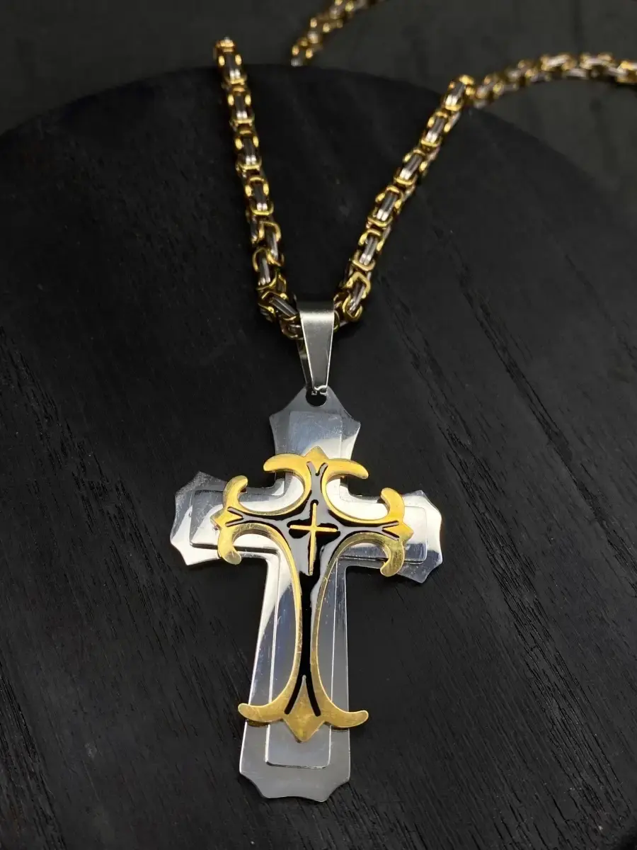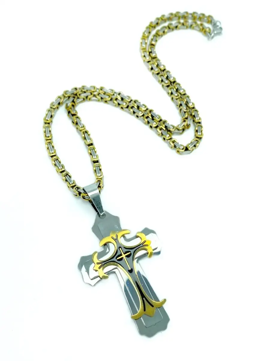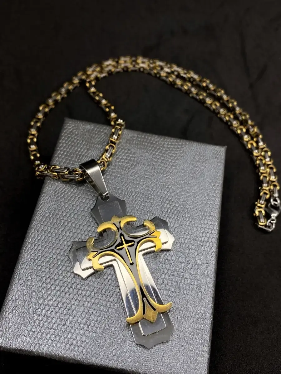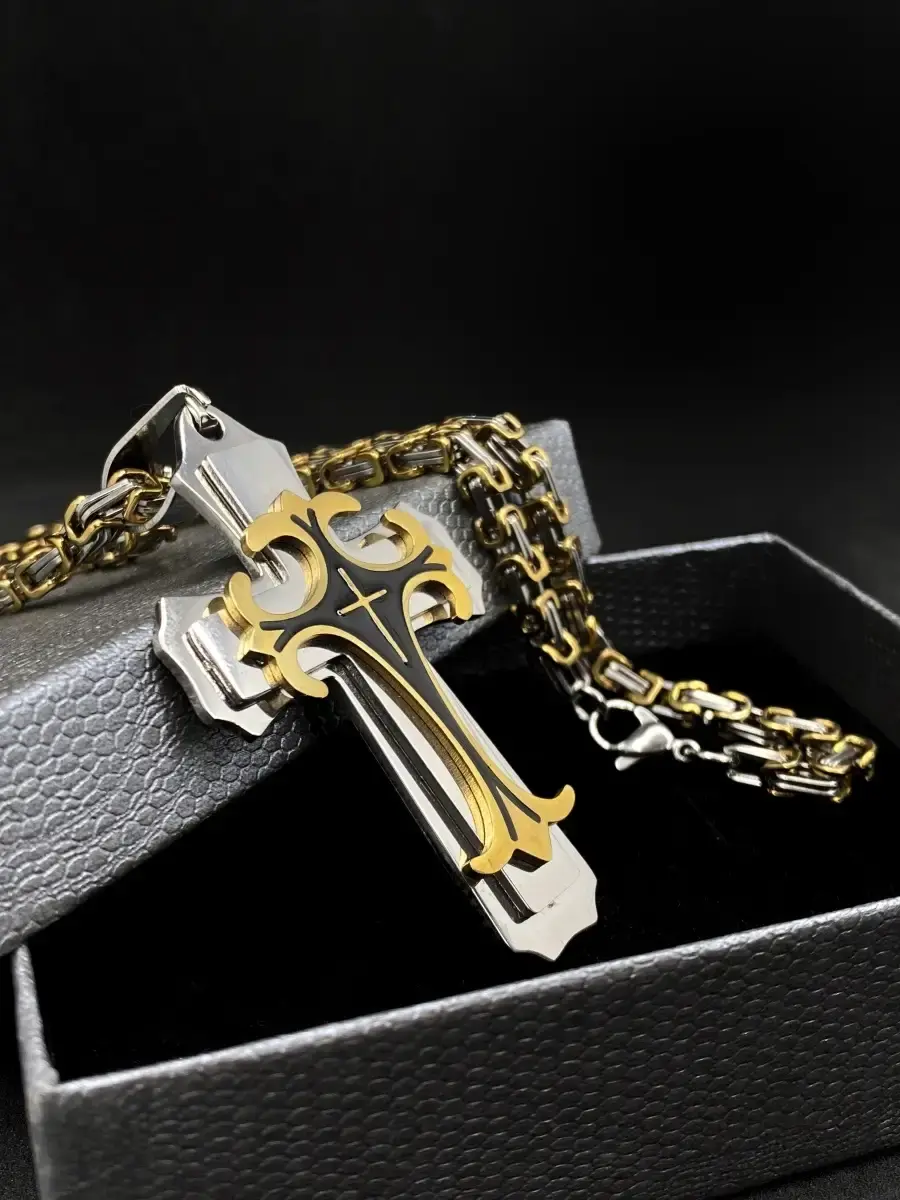Массивные мужские цепочки с крестиком Steel Rage из нержавеющей стали - эффектный уникальный и символичный подарок для мужчин в красивой ПОДАРОЧНОЙ КОРОБКЕ!