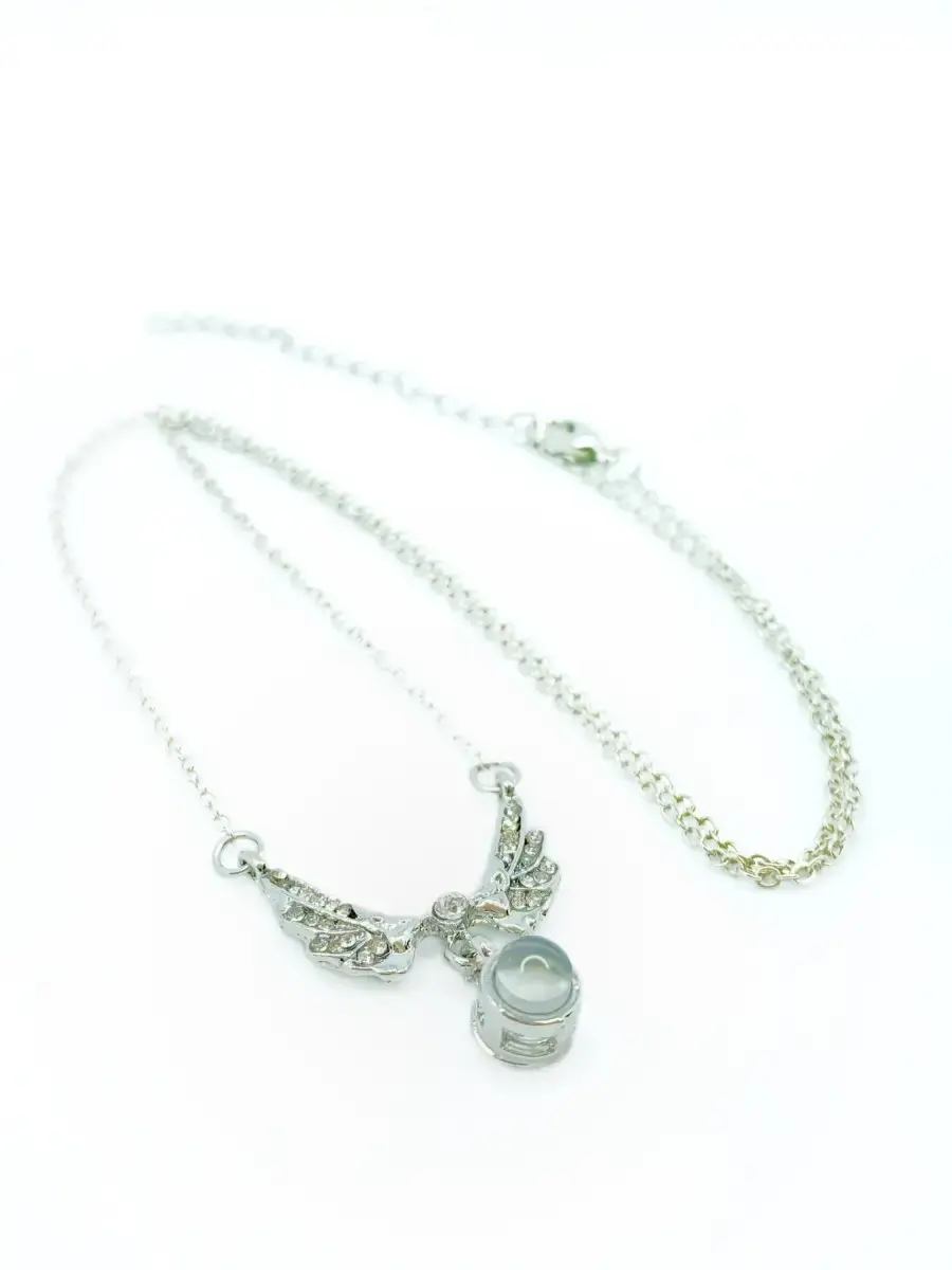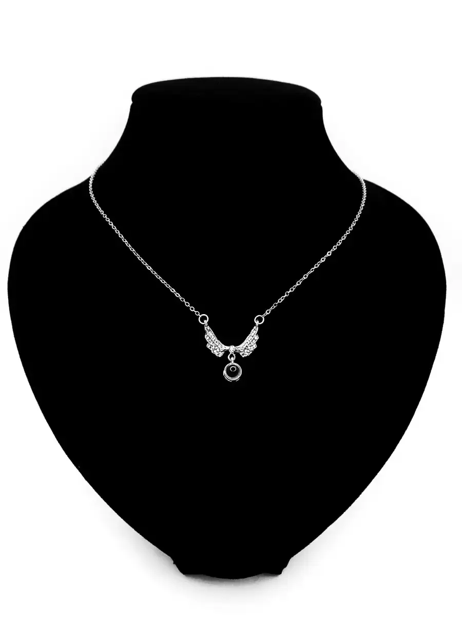 Легкая короткая женская цепь колье с кулоном подвеской Крылья и проекцией I Love You на 100 языках