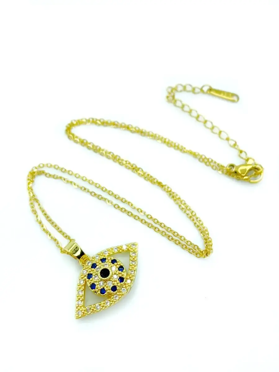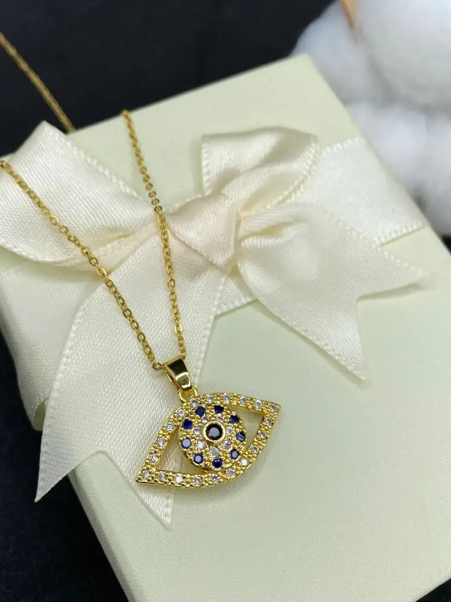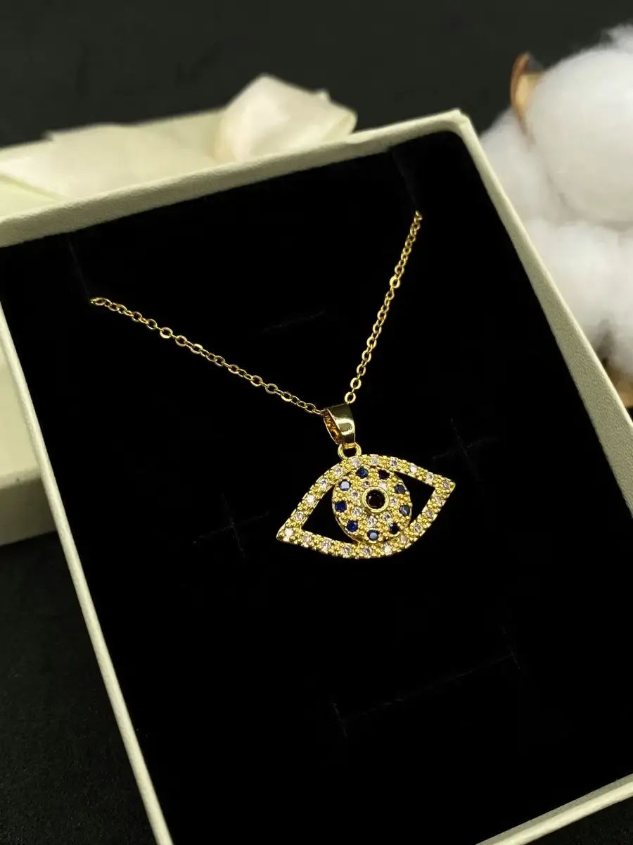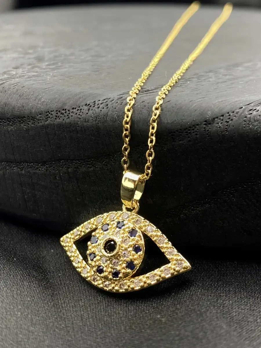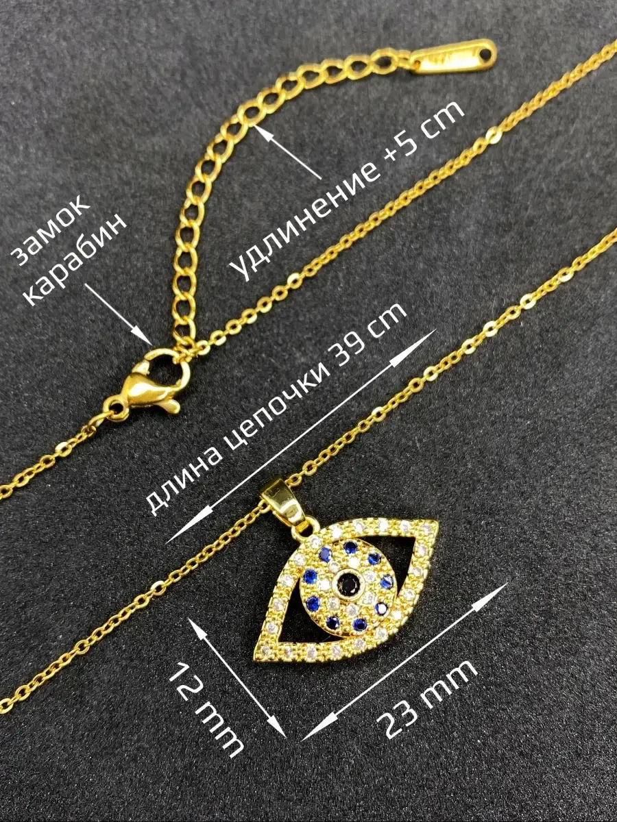 Талисман амулет Глаз от сглаза на тонкой цепи для девушек - это эстетичное изящное женское украшение на шею, которое будет оценено по достоинству! Модный женский медальон оберег на шею подойдёт к повседневному или вечернему образу. Тренд 2023-2024 короткое колье на шею на тонкой цепочке и в стильной коробочке - идеальный подарок. Необыкновенное шейное украшение для девушек представлено в одном цвете - с золотистой цепочкой и подвеской под золото.