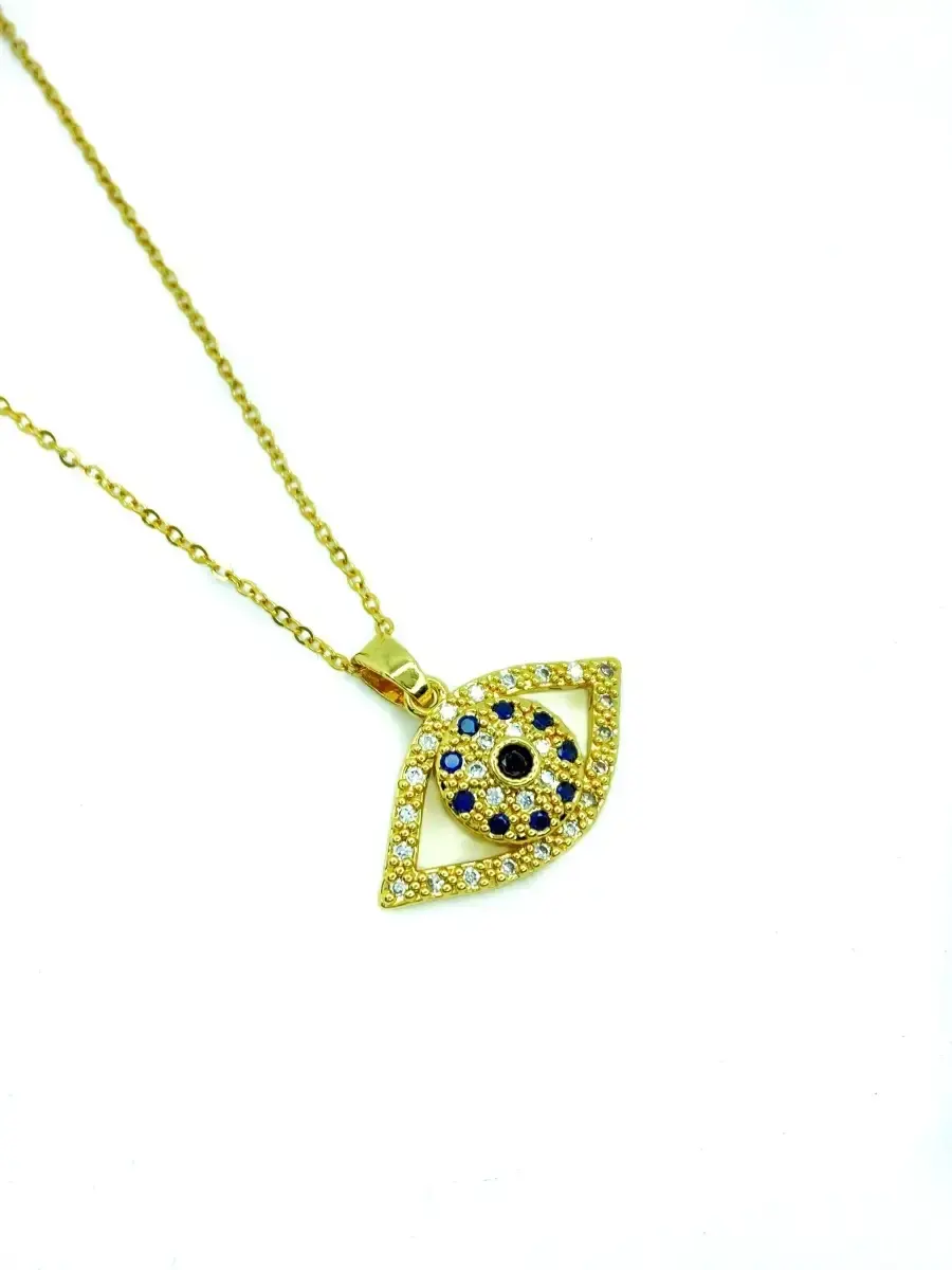 Золотистое женское колье на тонкой цепочке с подвеской оберегом Глаз от сглаза